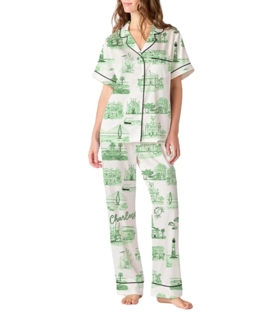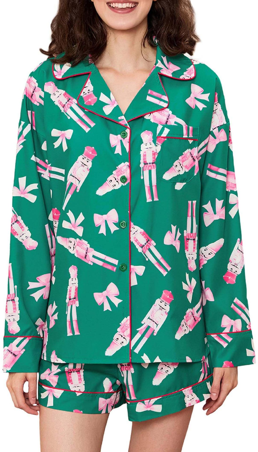 2024 국경 여름 새로운 아마존 AliExpress 인쇄 귀여운 잠옷 세트 긴 소매 바지 세트 여성스토어 가기