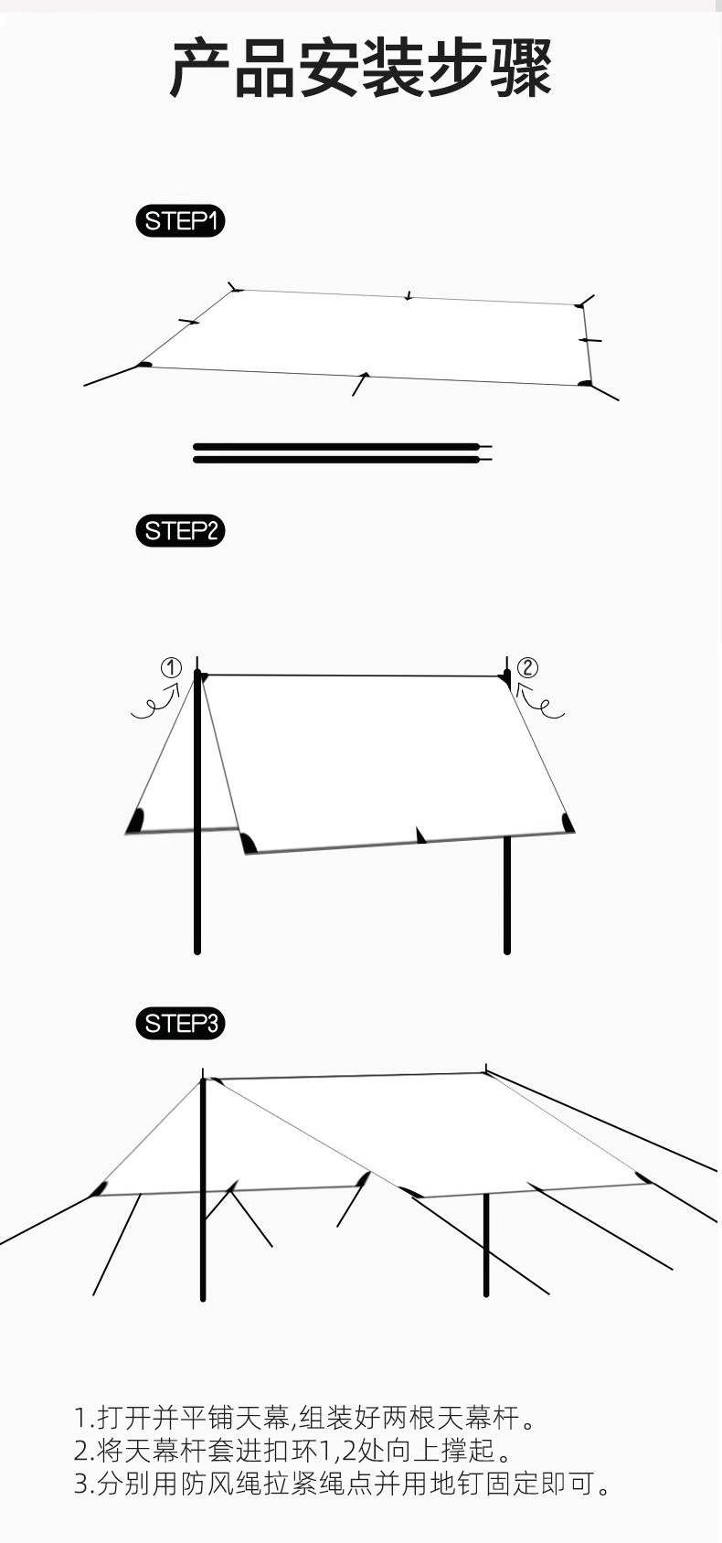 캠핑 야외 캐노피 텐트 검은 접착제 자외선 차단 캠핑 용품 실버 코팅 커튼 휴대용 차양 캐노피