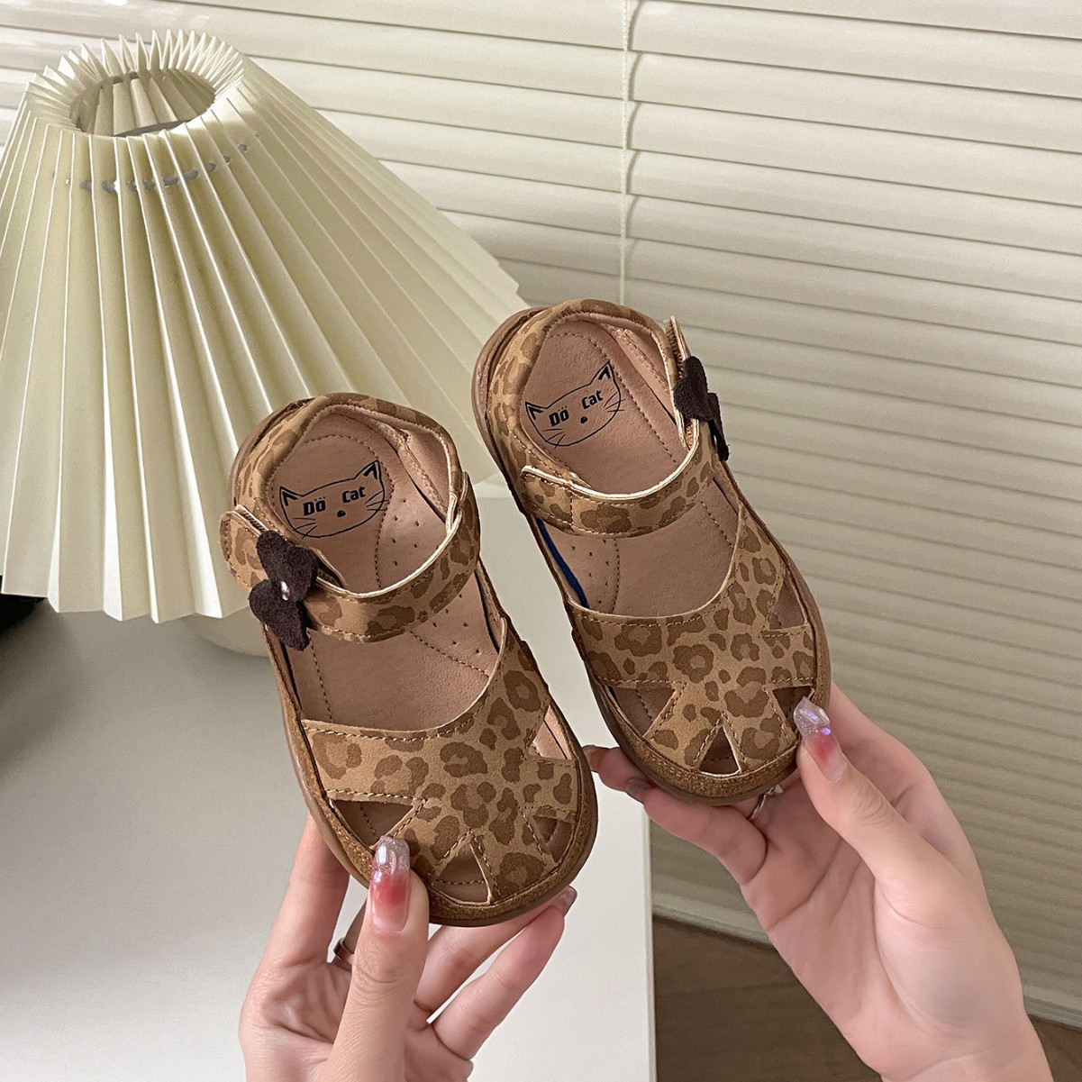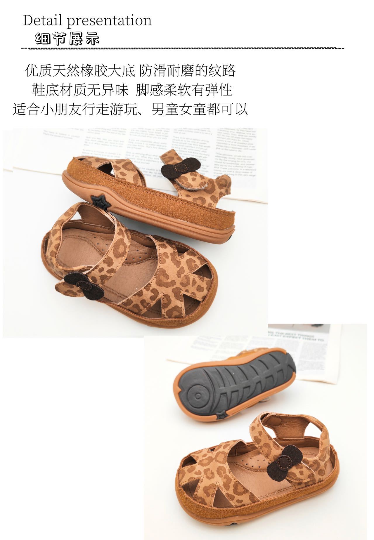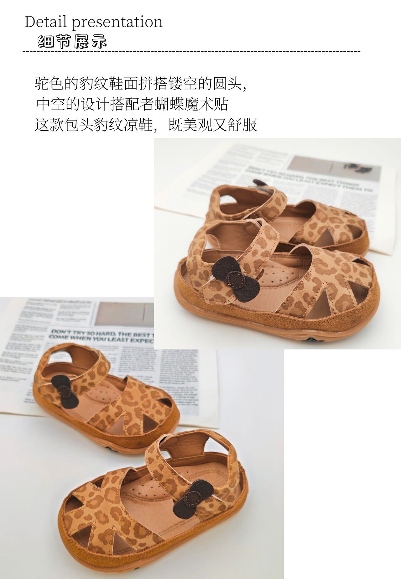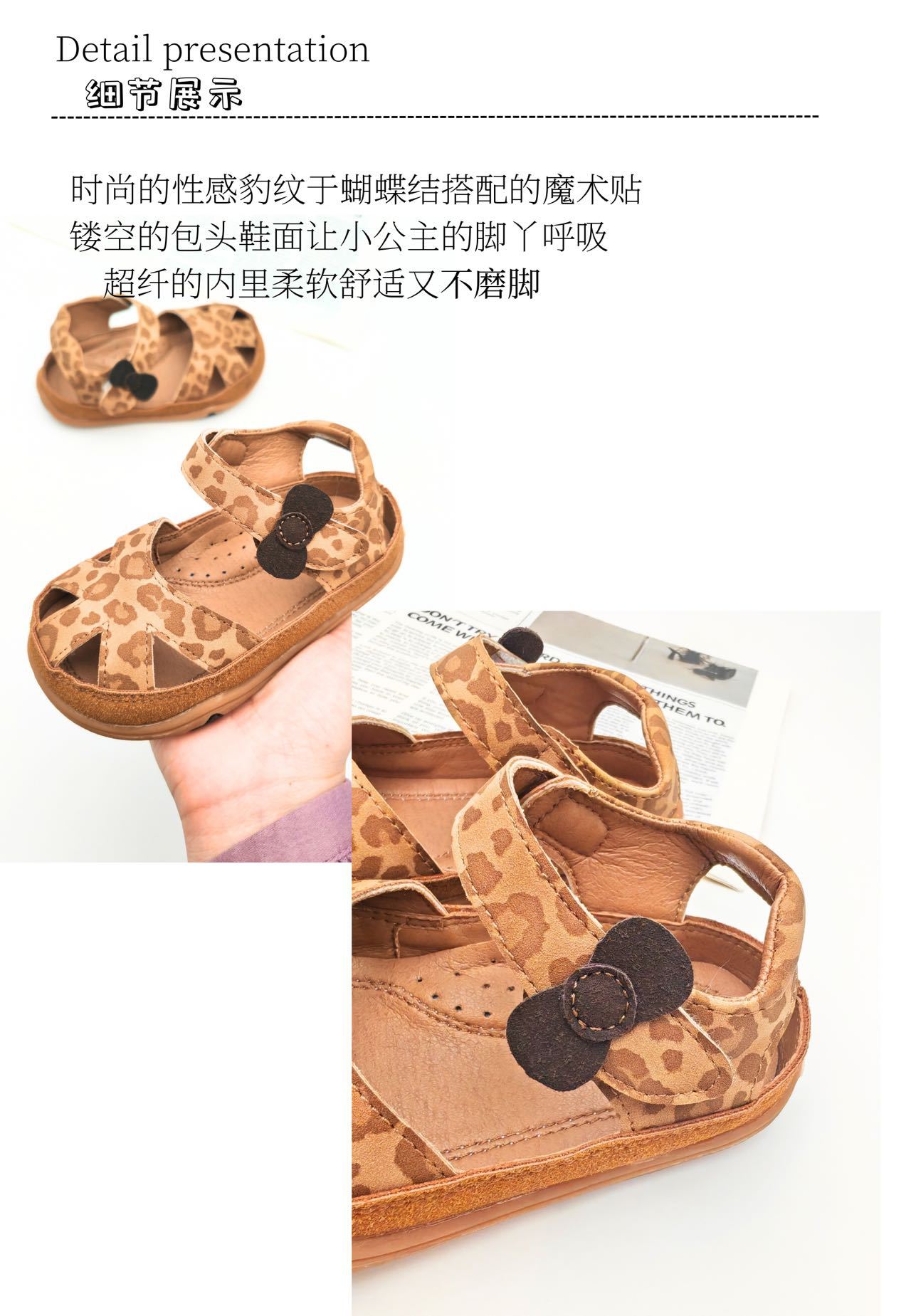 2025년 새로운 여름 스타일의 카멜 레오파드 프린트 중공 발가락 샌들, 소년 소녀 모두 착용 가능, 나비 벨크로스토어 가기
