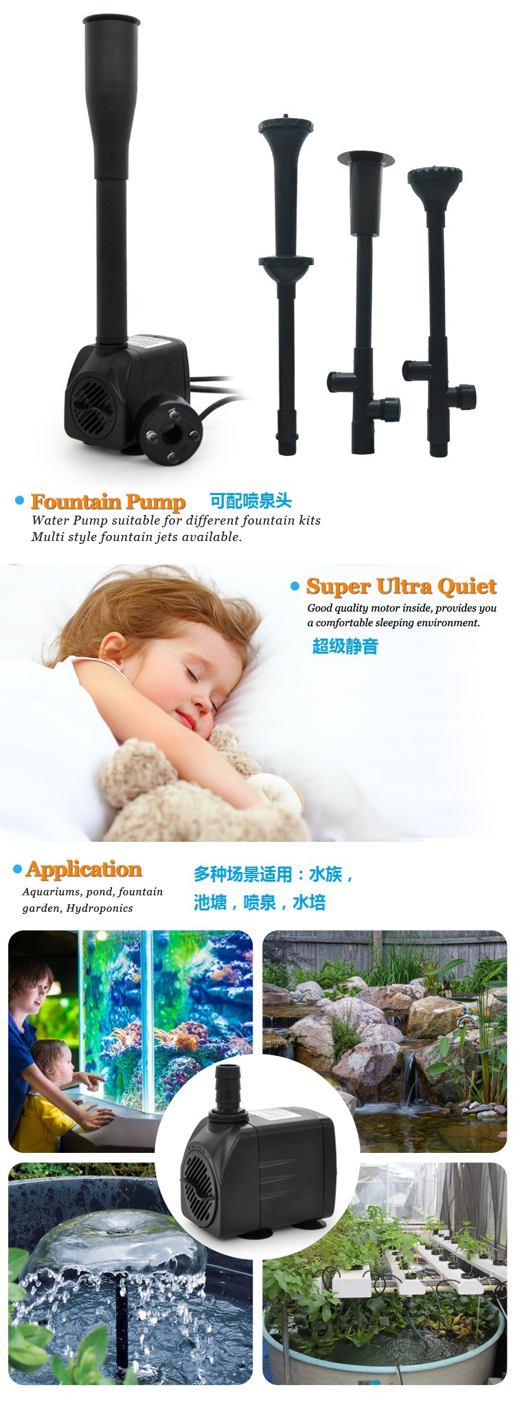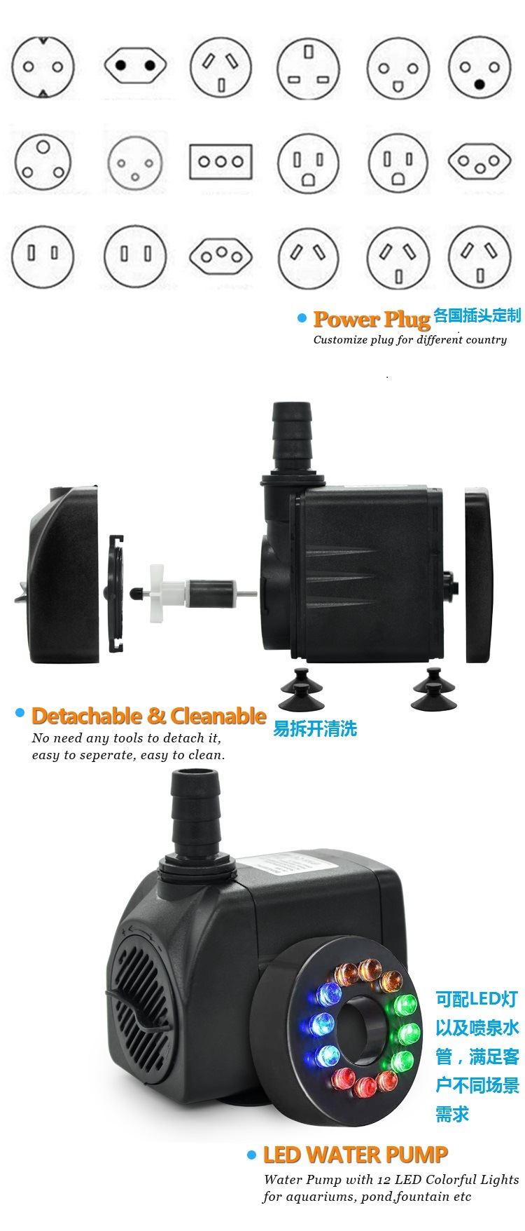 수족관 물 펌프 수족관 어항 필터 수영장 분수 잠수정 펌프 LED 조명