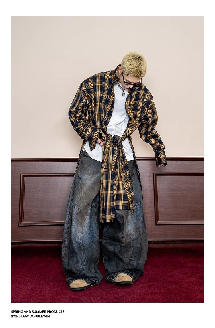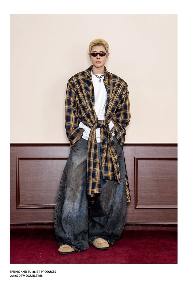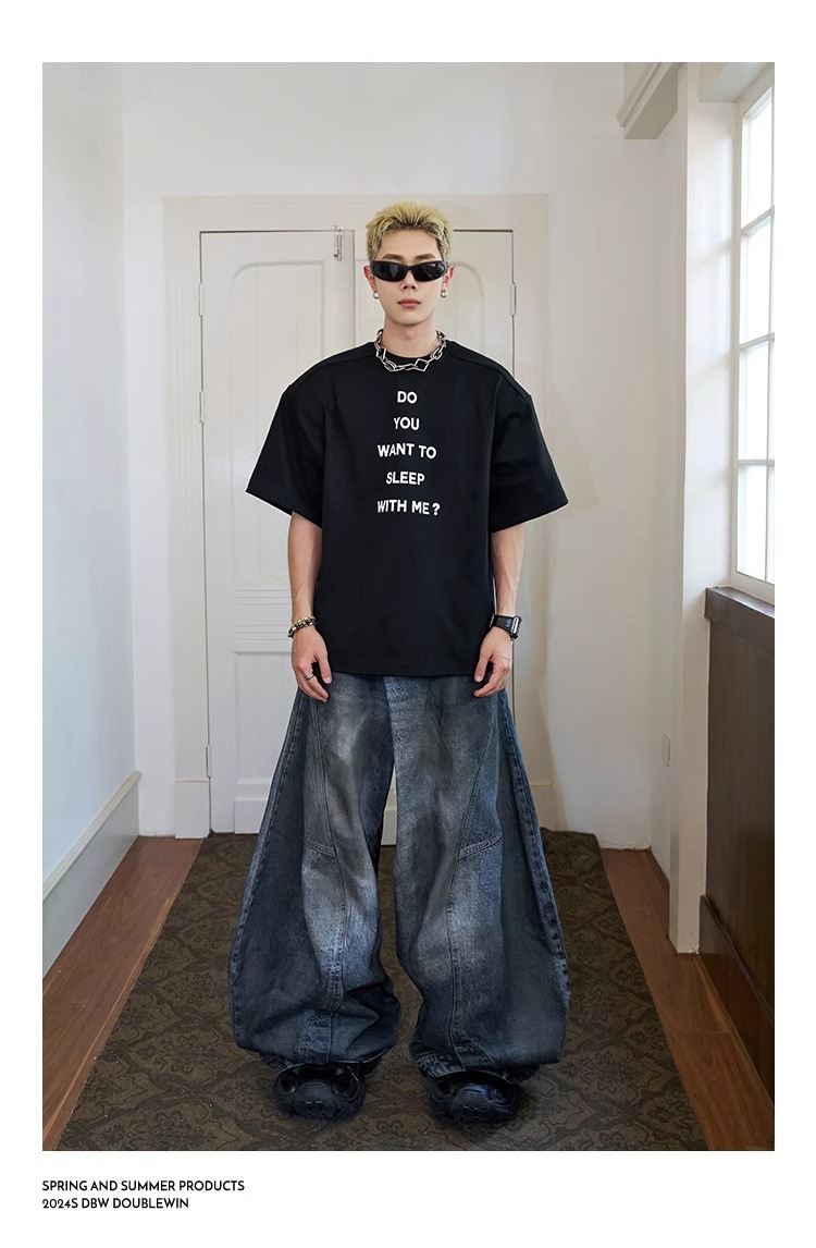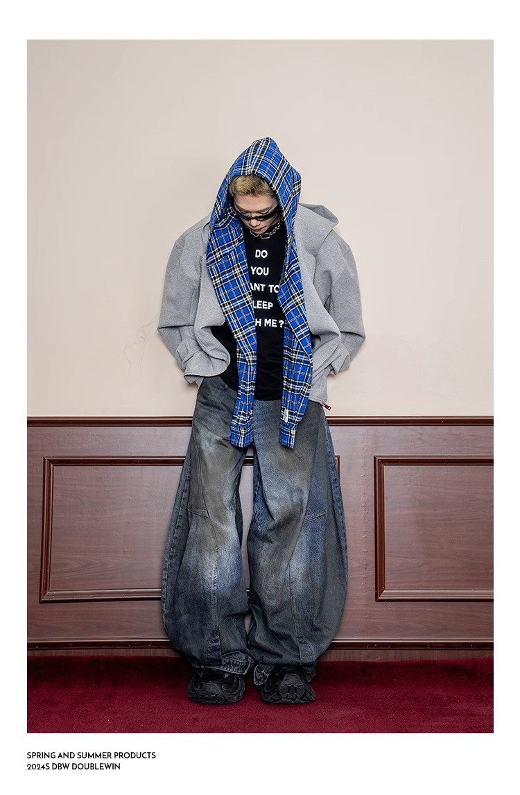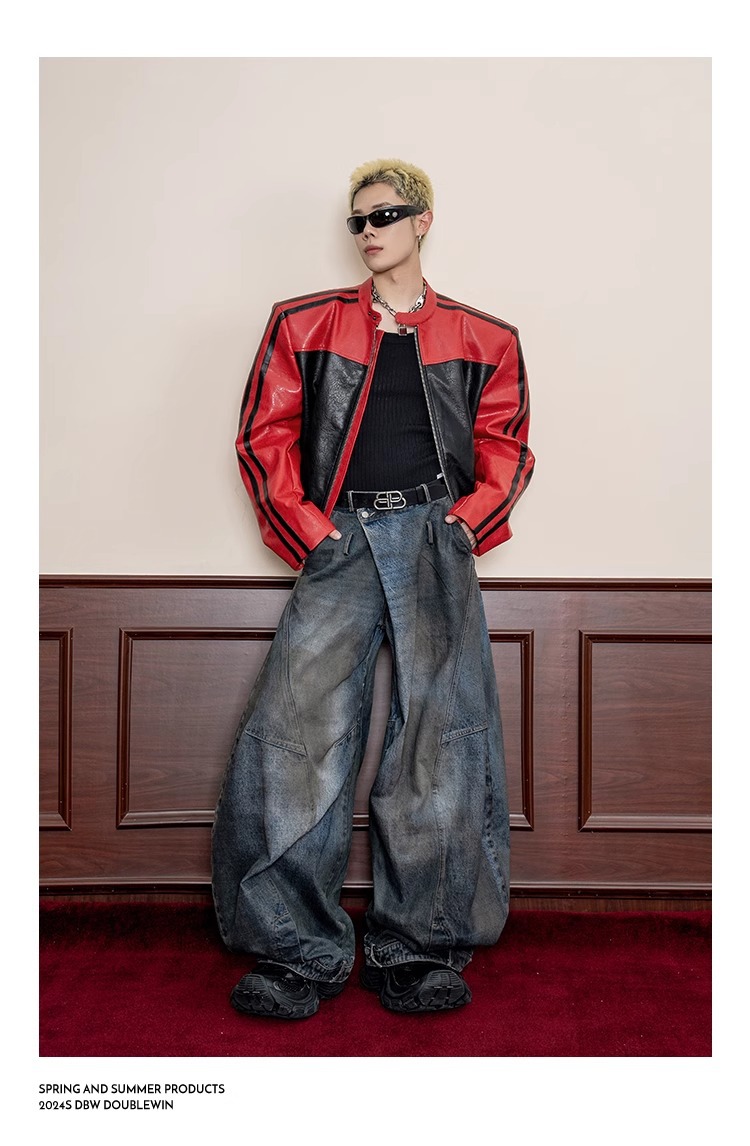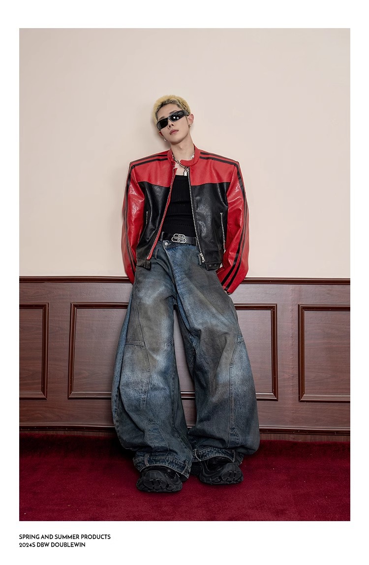 거리 고민 컬러 청바지 남자의 2024 가을 새로운 느슨한 디자인 감각 허리 넓은 다리 긴 바지스토어 가기