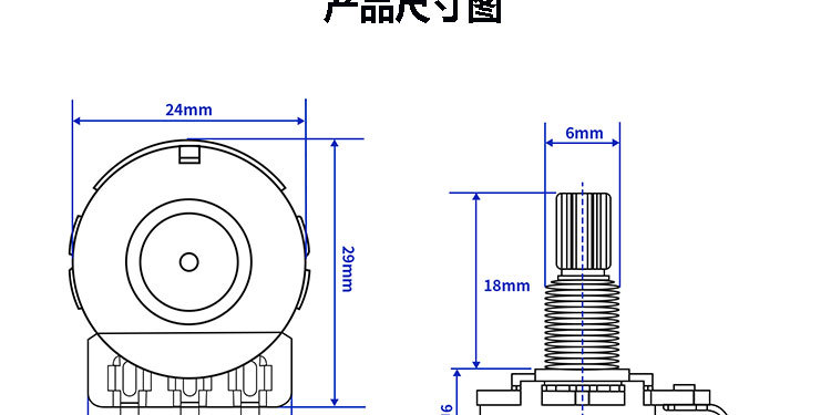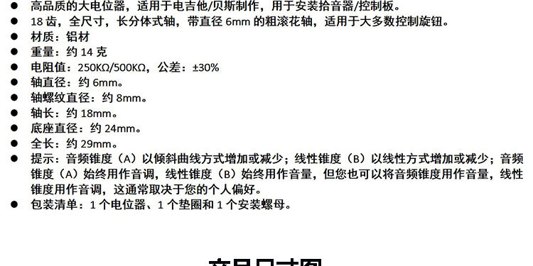 18mm 전위차계 전기 기타베이스 손잡이 음량 스위치 500k 알루미늄 샤프트 250K 버튼 도매 액세서리스토어 가기