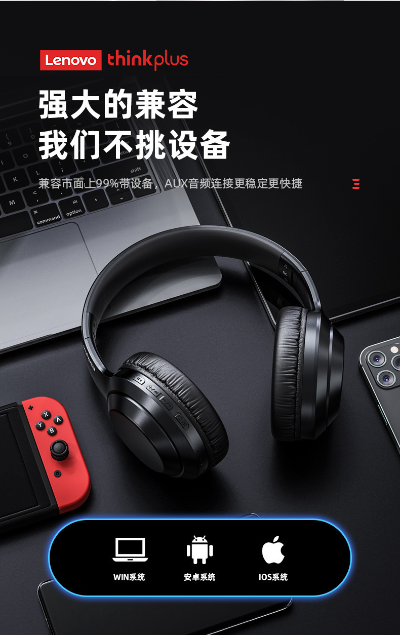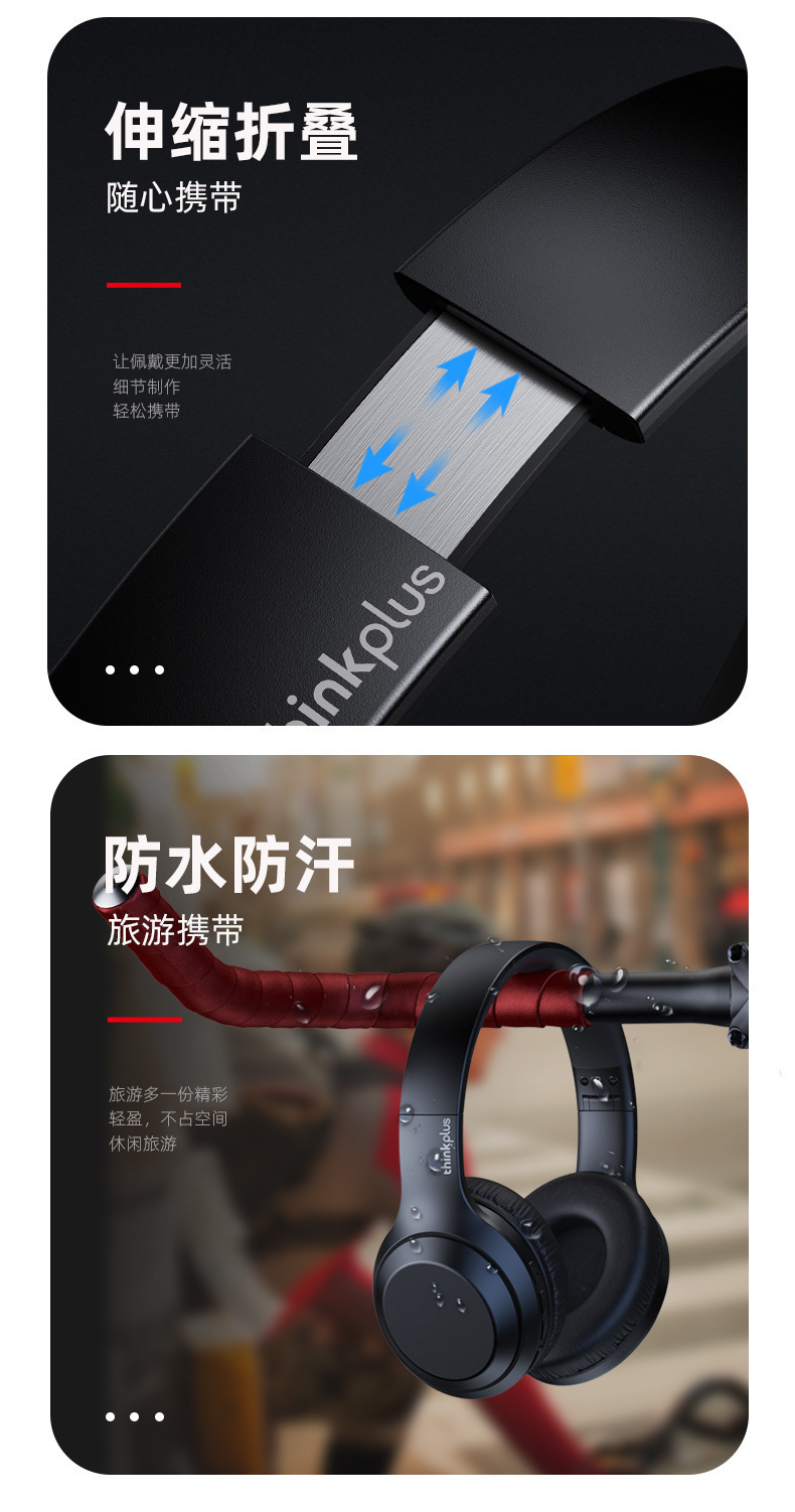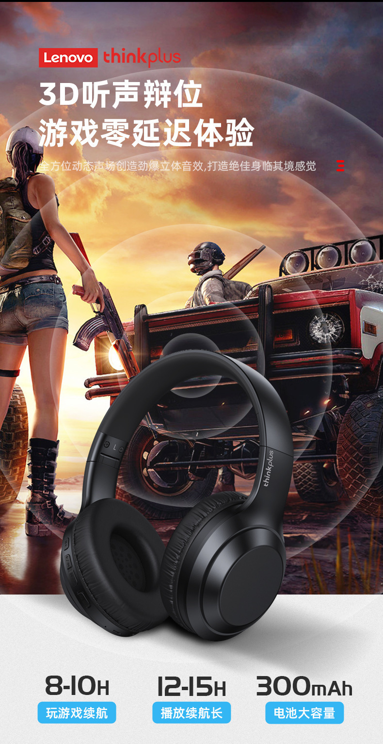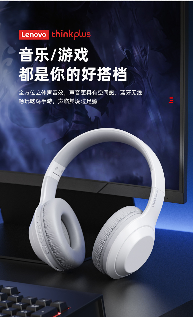 Thinkplus TH10 Lenovo 헤드 장착형 Bluetooth 헤드셋 초장기 배터리 수명 소음 감소 e-스포츠 게임용 헤드셋 적합