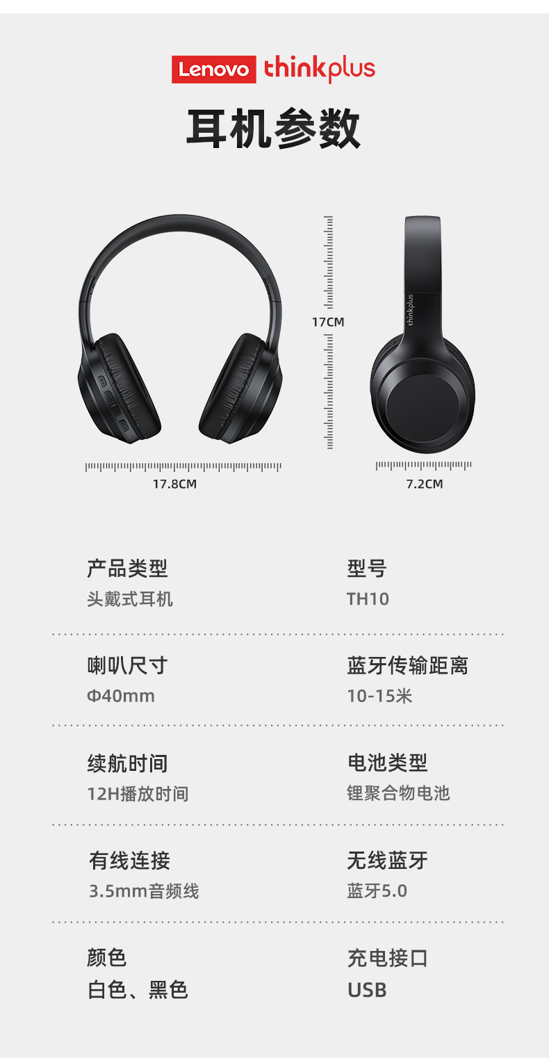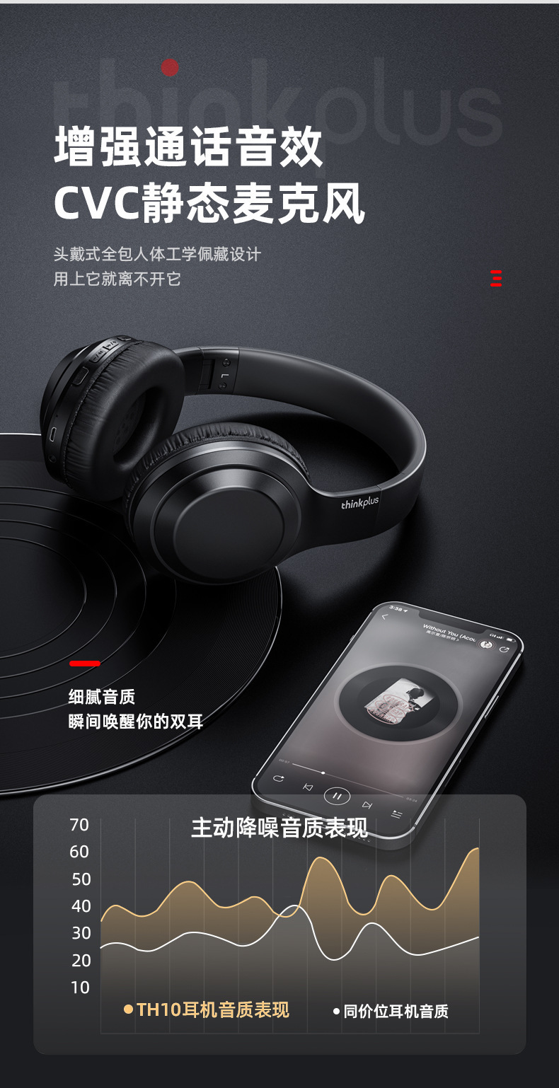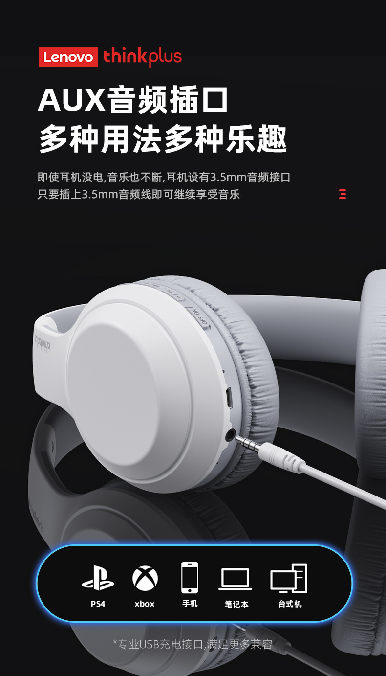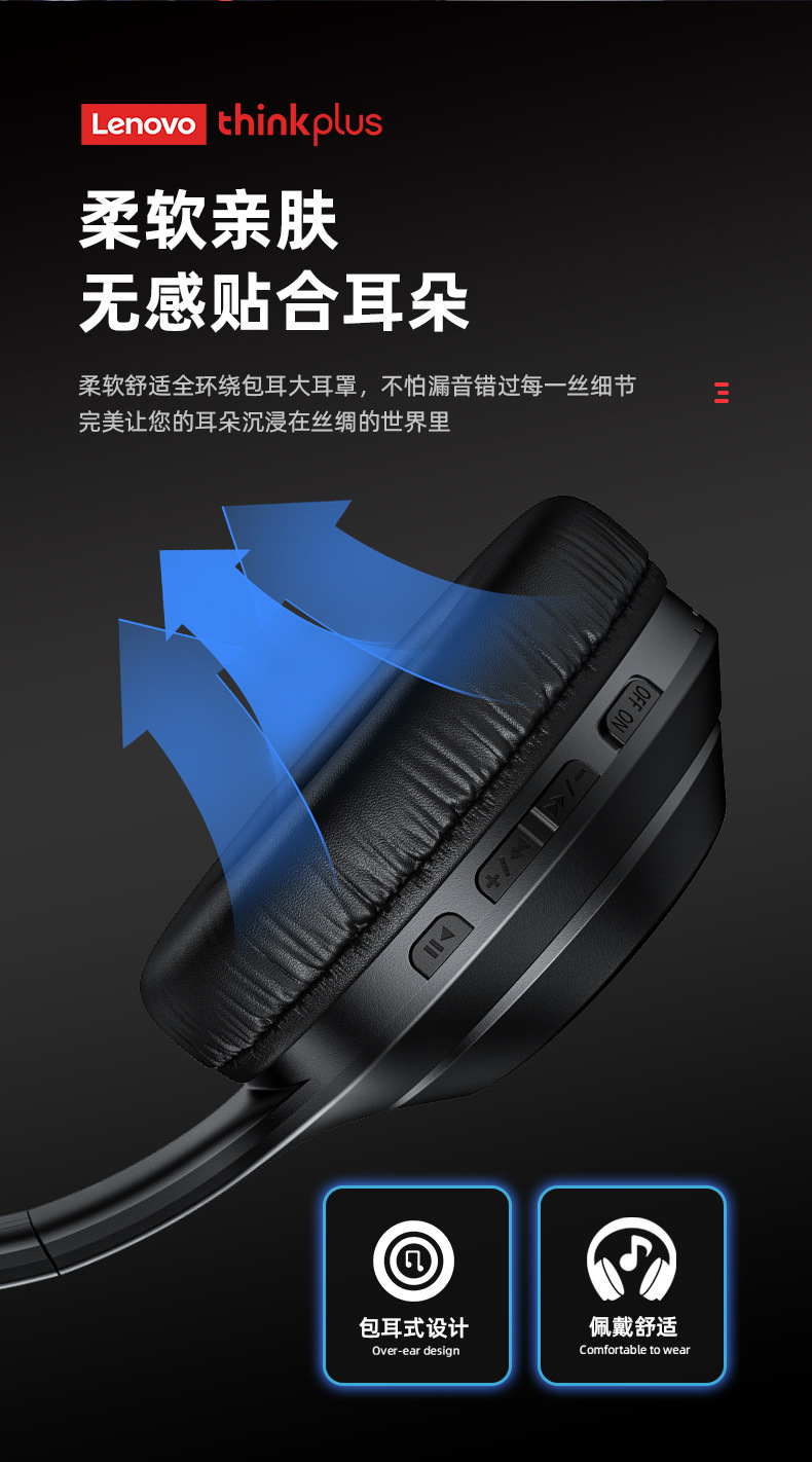 Thinkplus TH10 Lenovo 헤드 장착형 Bluetooth 헤드셋 초장기 배터리 수명 소음 감소 e-스포츠 게임용 헤드셋 적합
