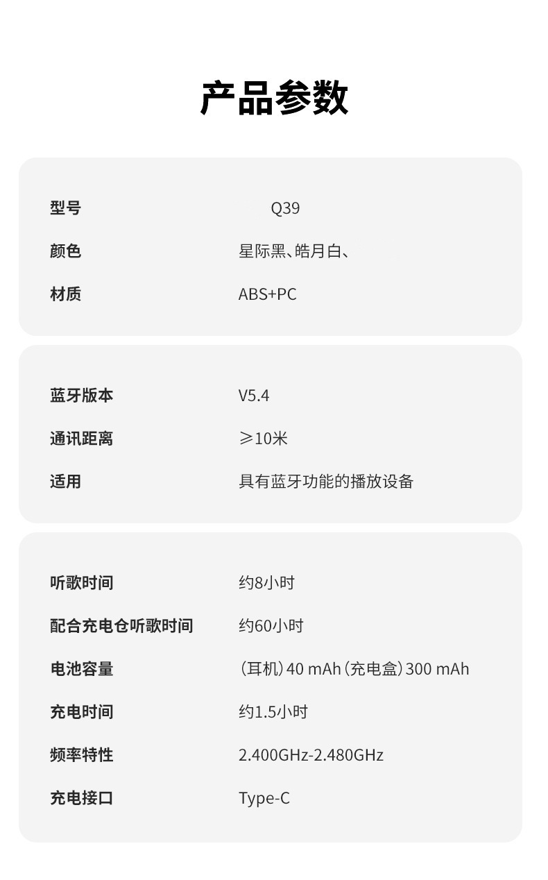Q39 새로운 AI 번역 국경 간 새로운 개인 모델 오픈 블루투스 헤드셋 OWS 긴 배터리 수명 무선 스포츠 헤드셋