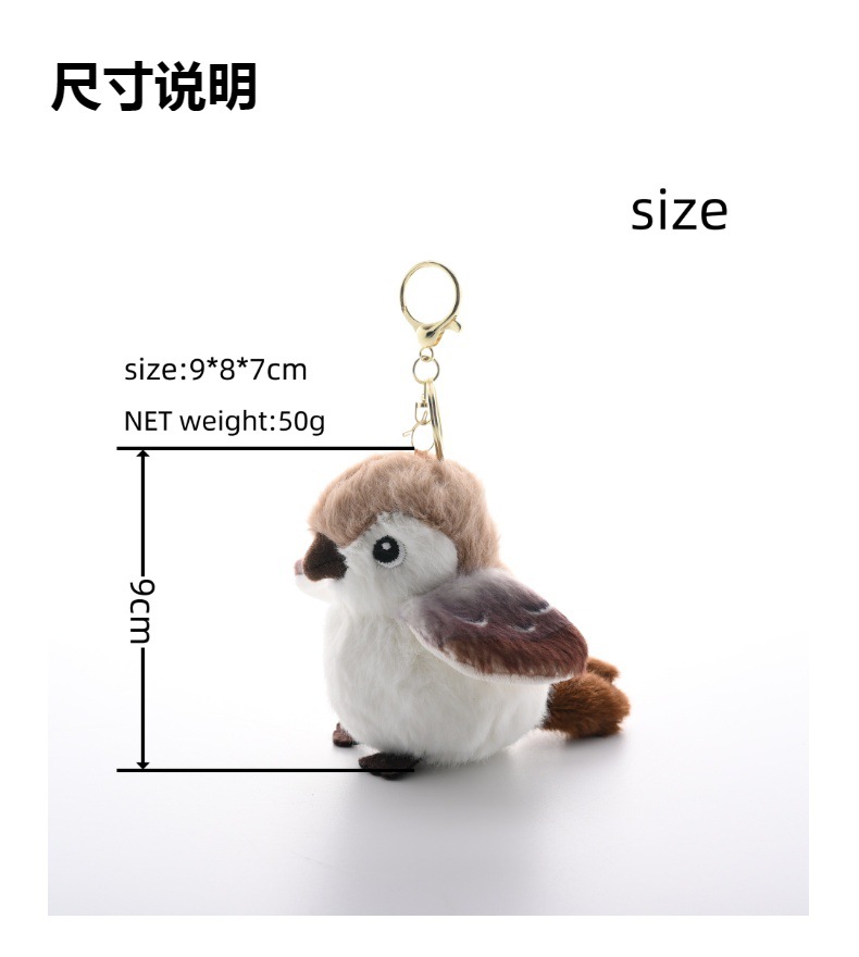 귀여운 시뮬레이션 새 작은 모피 공 작은 참새 봉제 키 체인 펜던트 인형 학교 가방 펜던트 인형 기계 인형스토어 가기