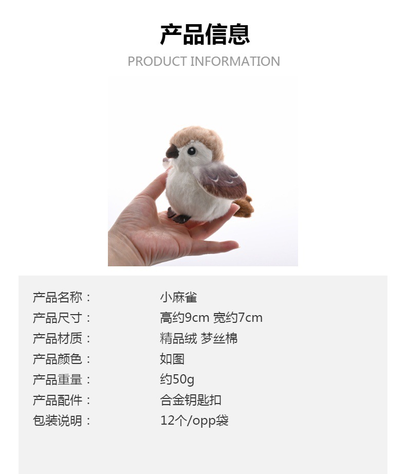 귀여운 시뮬레이션 새 작은 모피 공 작은 참새 봉제 키 체인 펜던트 인형 학교 가방 펜던트 인형 기계 인형