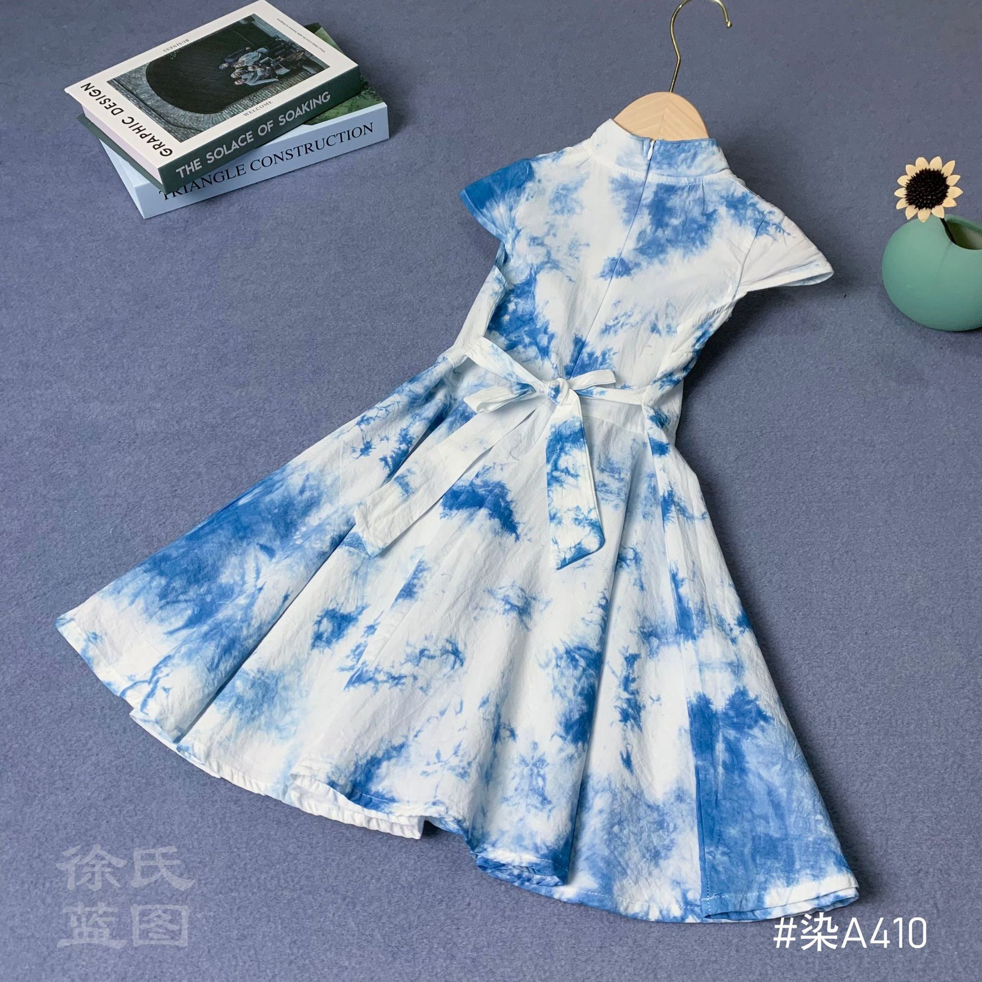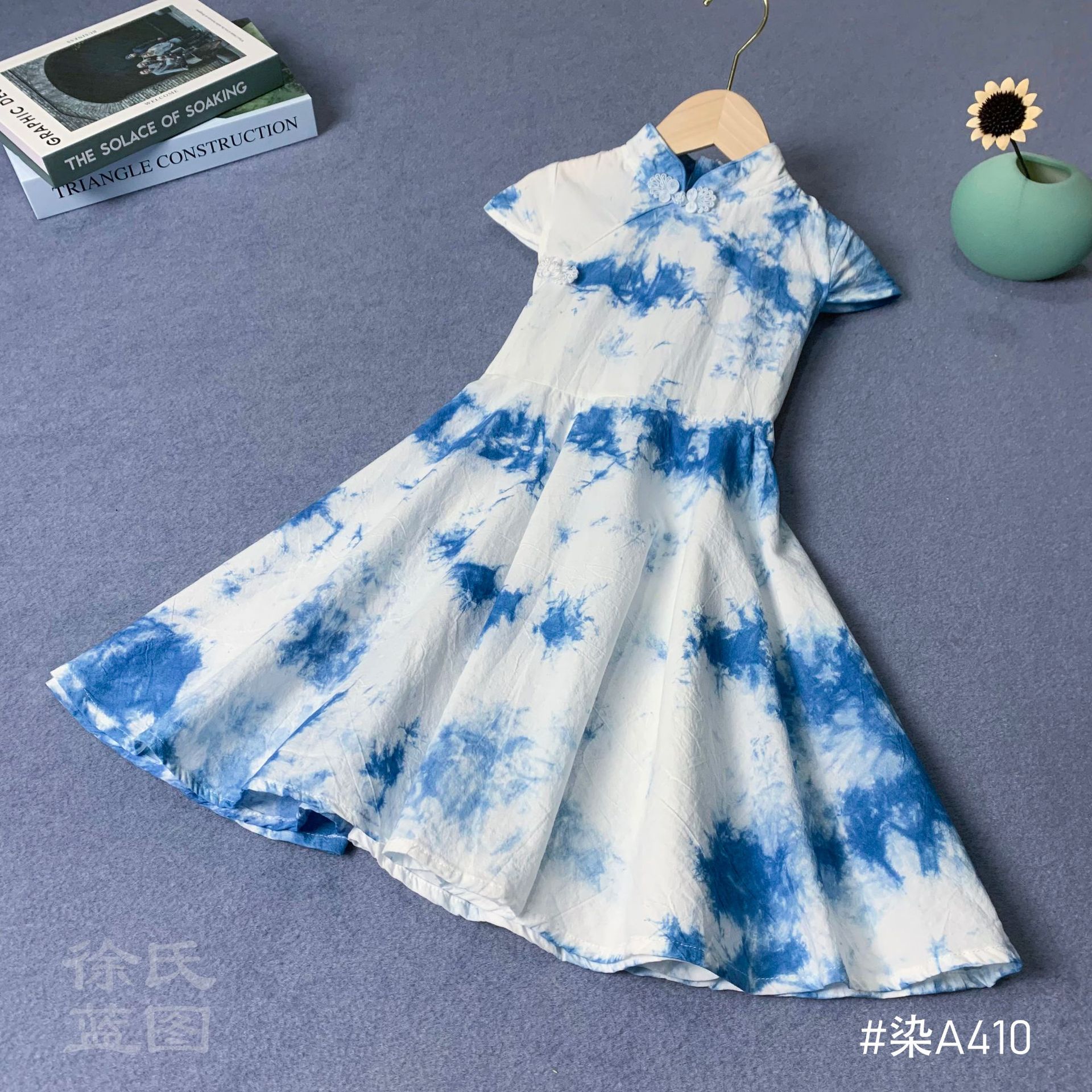 타이 염색 여름 민족 스타일 소녀 드레스 귀여운 플라잉 슬리브 버튼 중국 스타일 소녀 롱 드레스스토어 가기