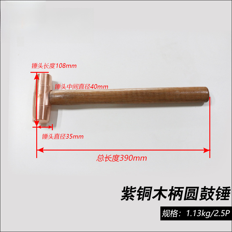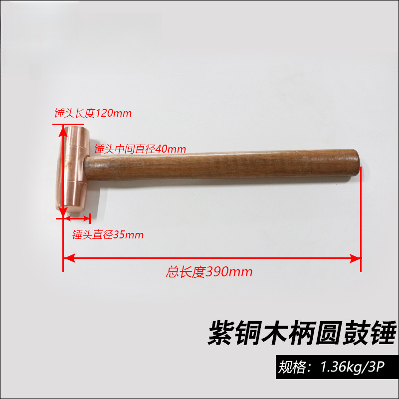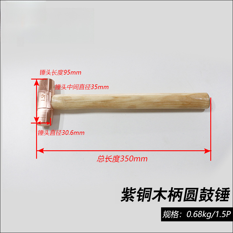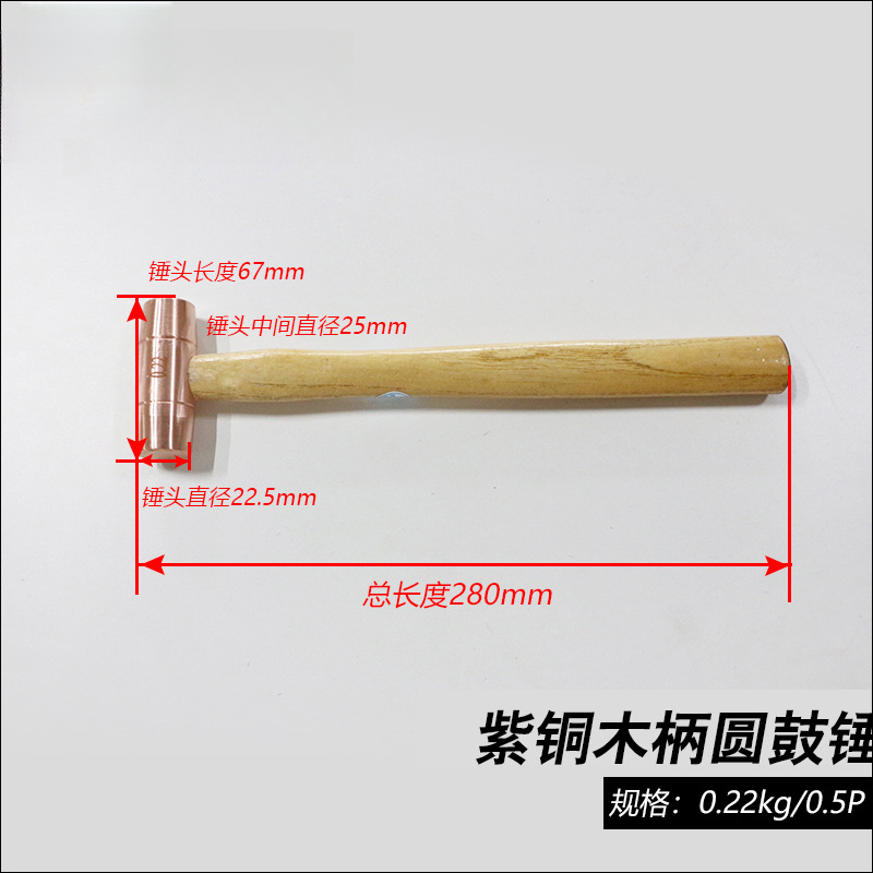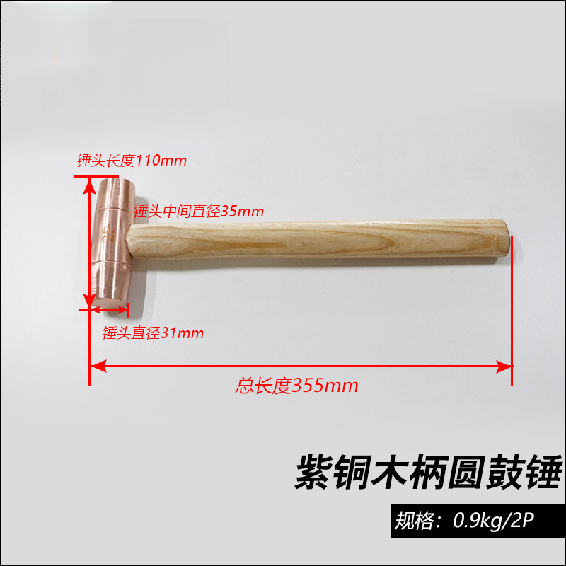 구리 둥근 드럼 망치 나무 손잡이 양면 망치 순수 구리 금형 설치 망치 구리 망치 둥근 드럼 망치 부드러운 구리 0.5 p-3p스토어 가기