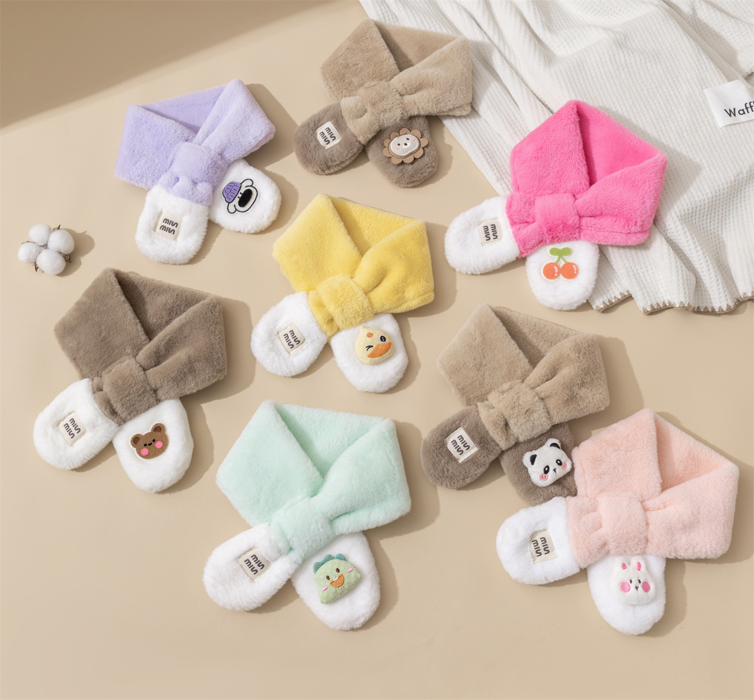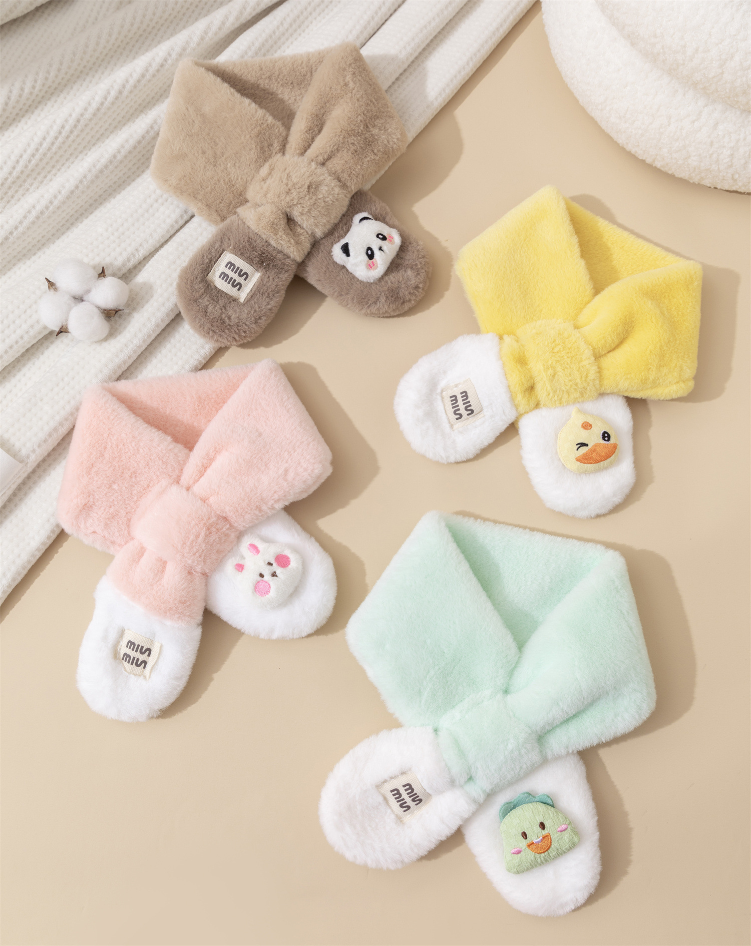 소년 소녀를위한 만화 어린이 봉제 스카프 겨울 따뜻한 십자가 목 커버 아기 두꺼운 방풍 목 보호 봉제 목
