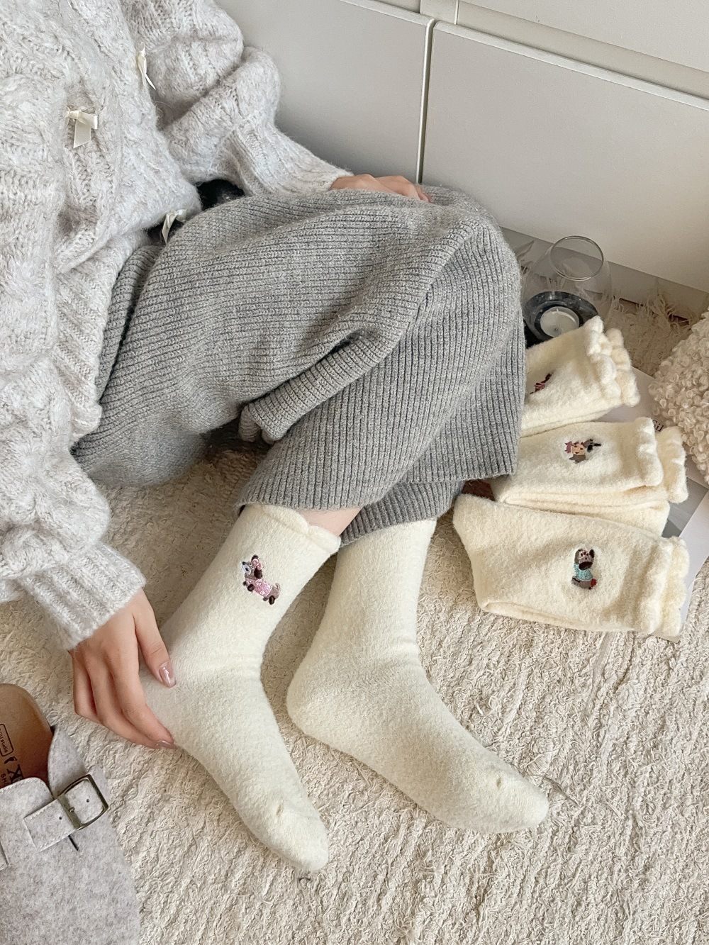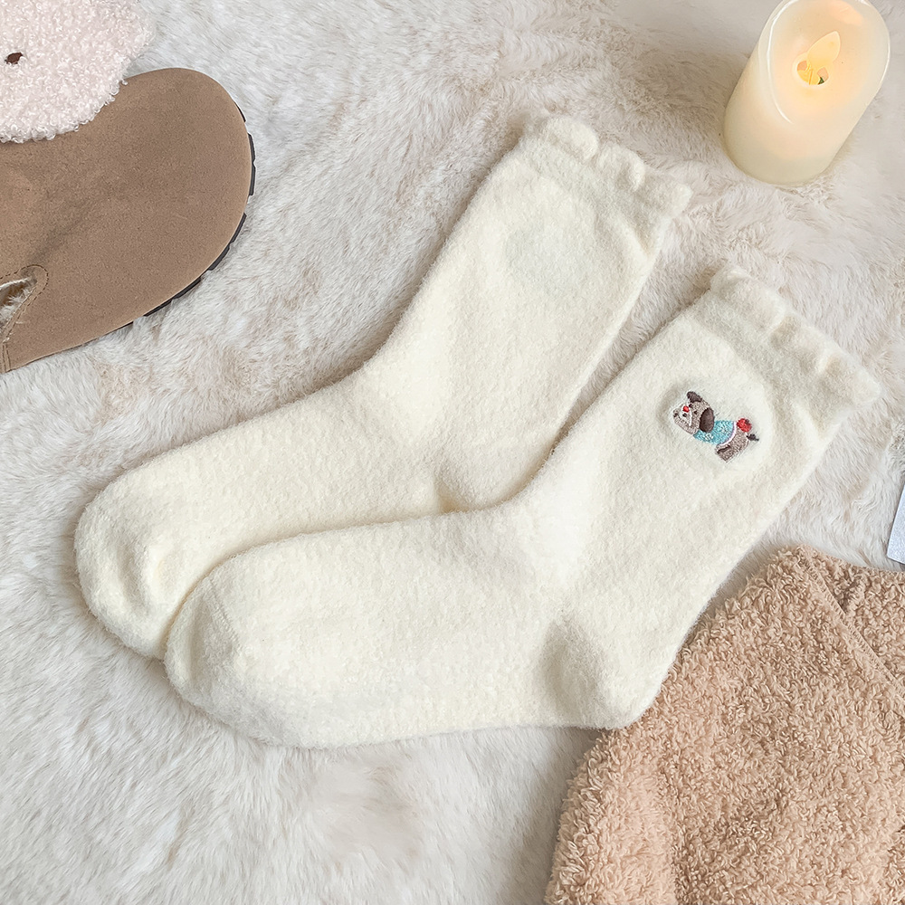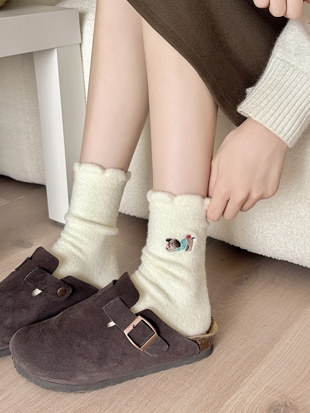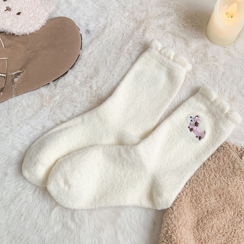 Dachshund Dog 호주 벨벳 양말 어린이 중간 길이 양말 가을과 겨울 기모 두꺼운 따뜻한 귀여운 자수 흰색 양말 뼈없는 양말스토어 가기