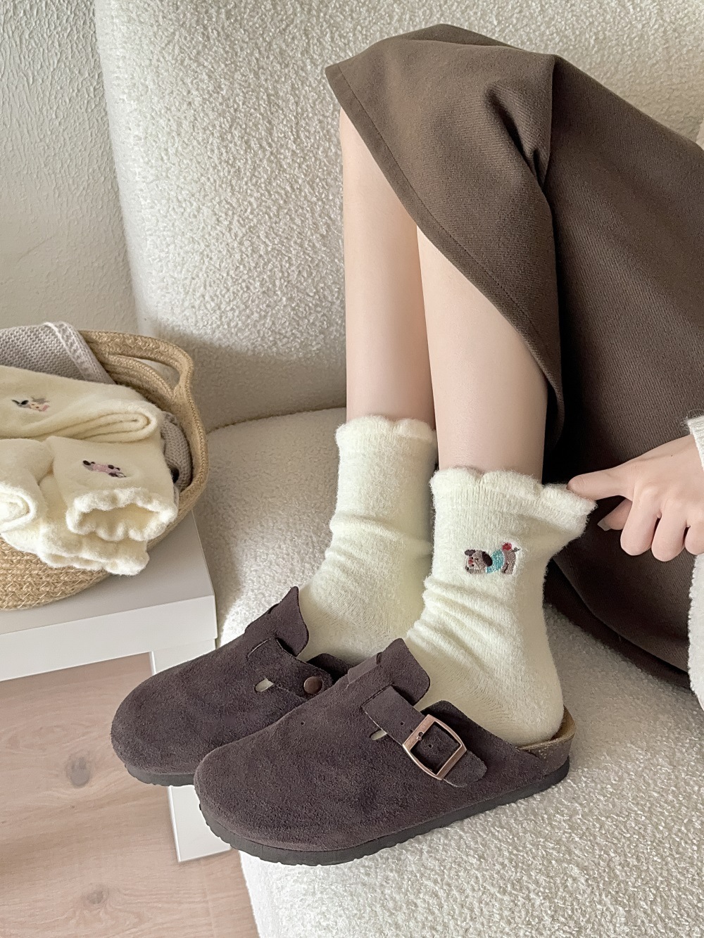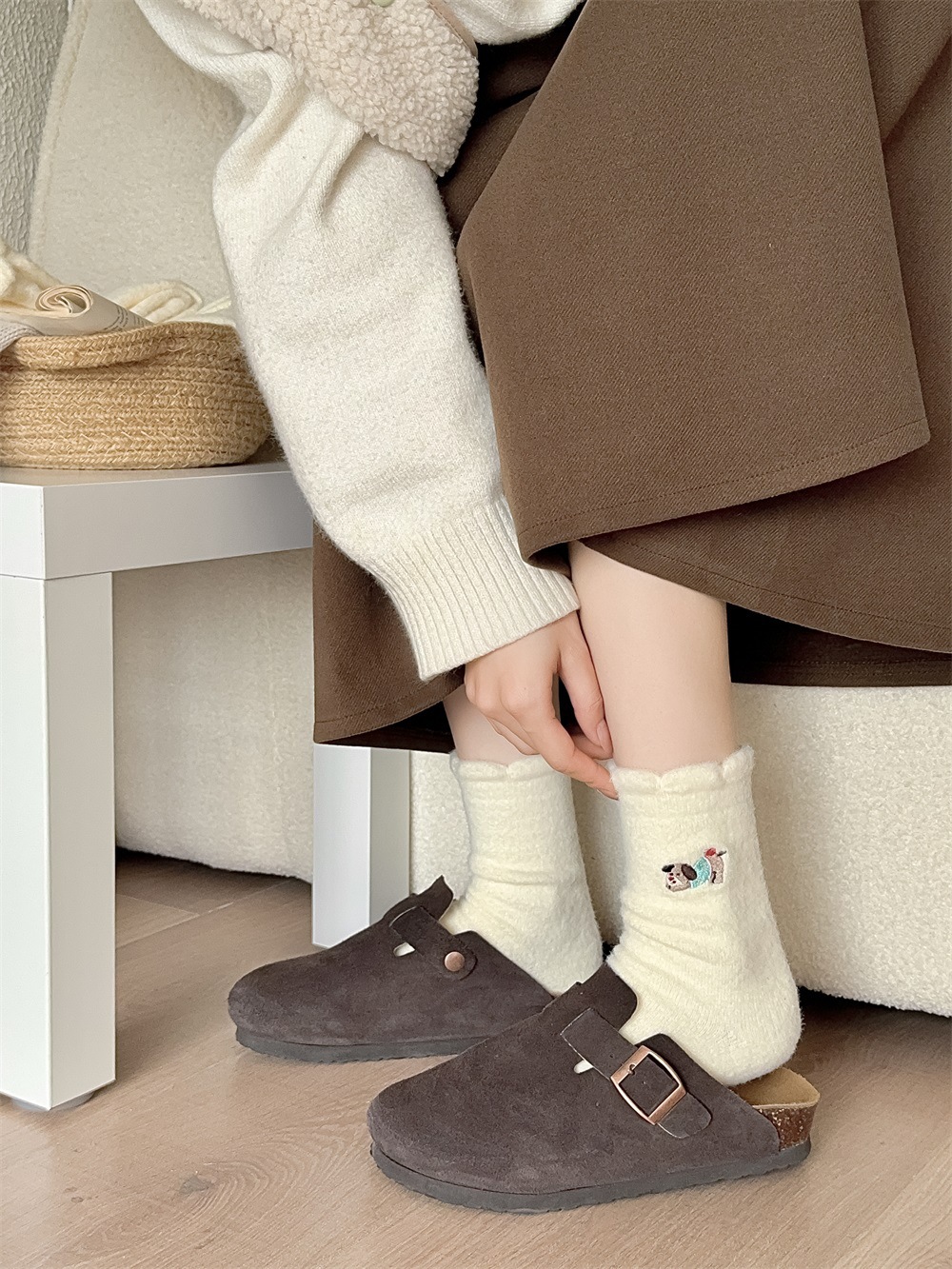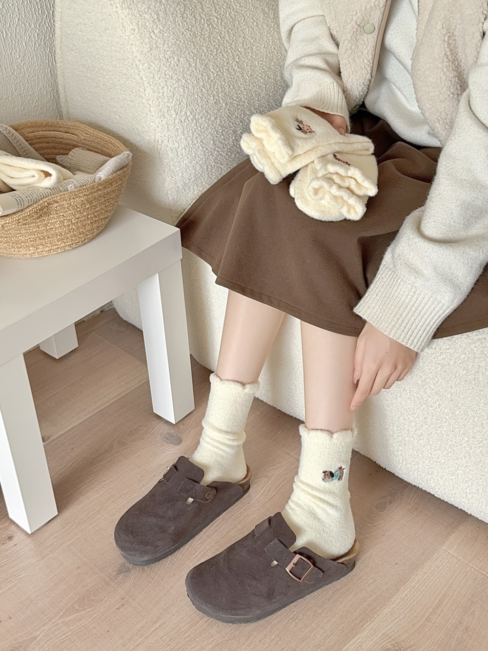 Dachshund Dog 호주 벨벳 양말 어린이 중간 길이 양말 가을과 겨울 기모 두꺼운 따뜻한 귀여운 자수 흰색 양말 뼈없는 양말스토어 가기