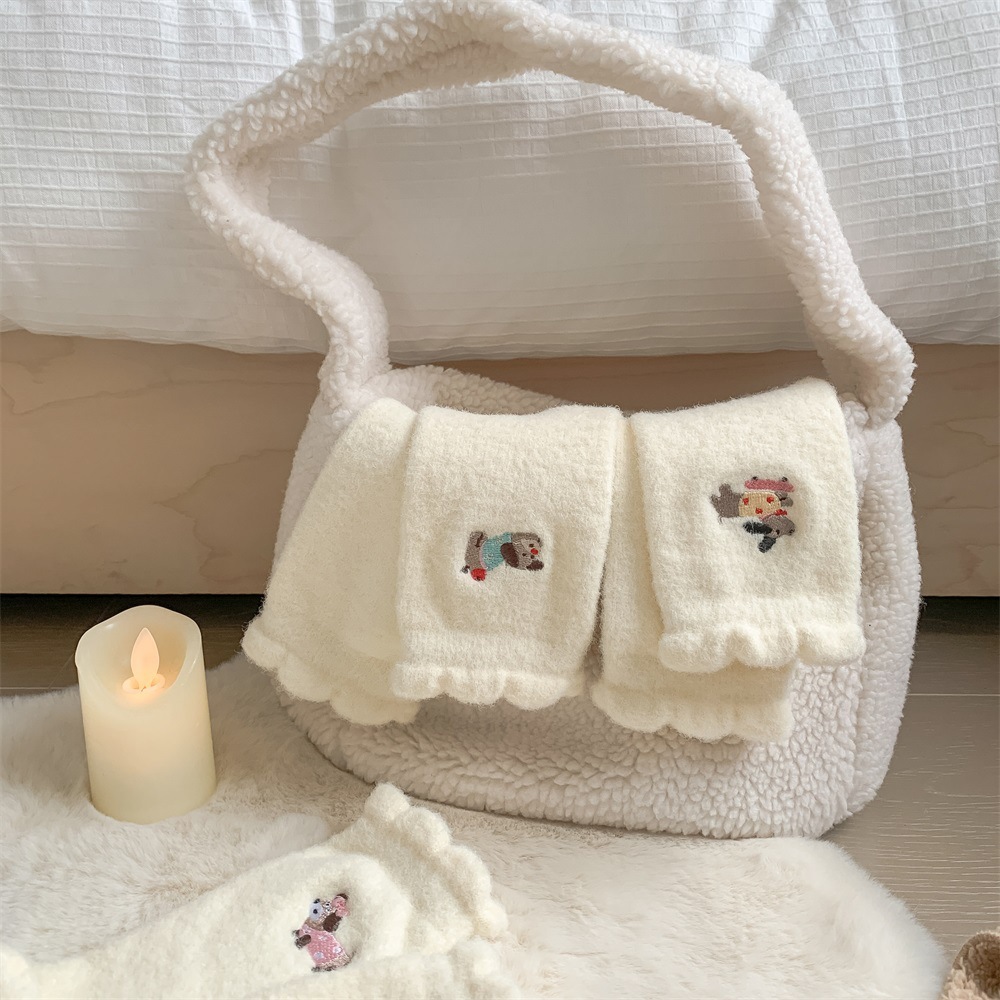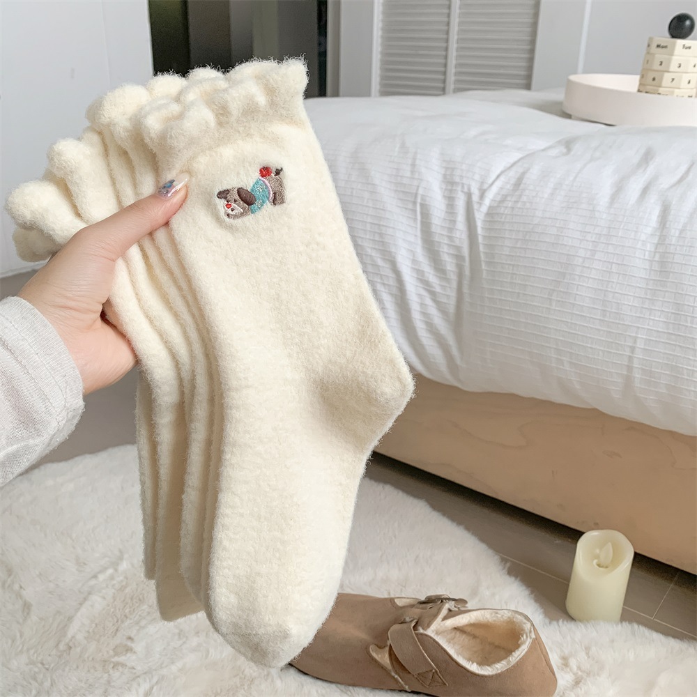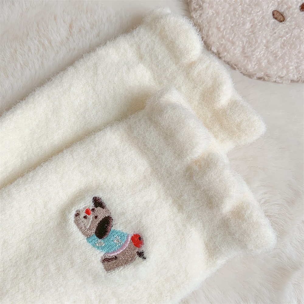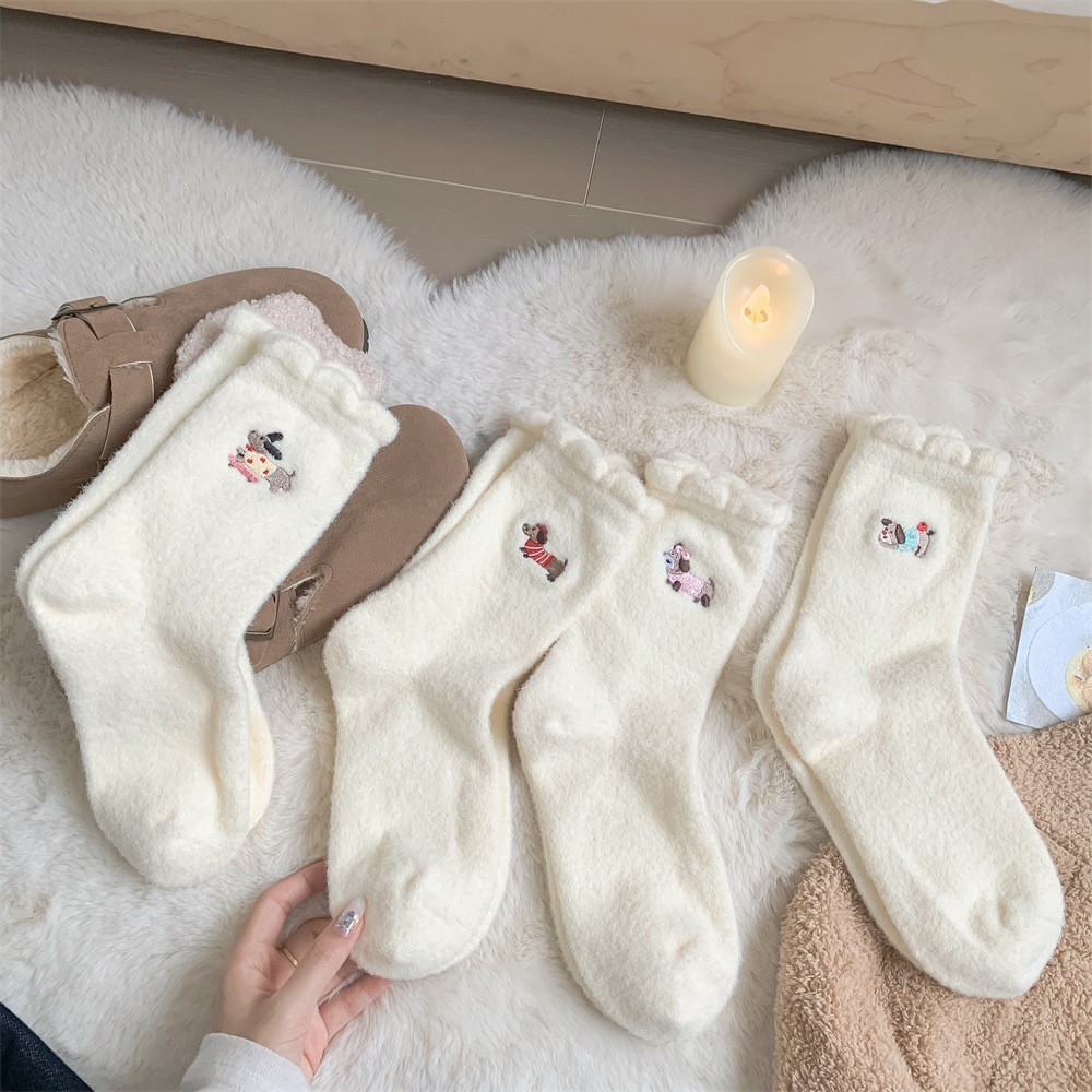 Dachshund Dog 호주 벨벳 양말 어린이 중간 길이 양말 가을과 겨울 기모 두꺼운 따뜻한 귀여운 자수 흰색 양말 뼈없는 양말