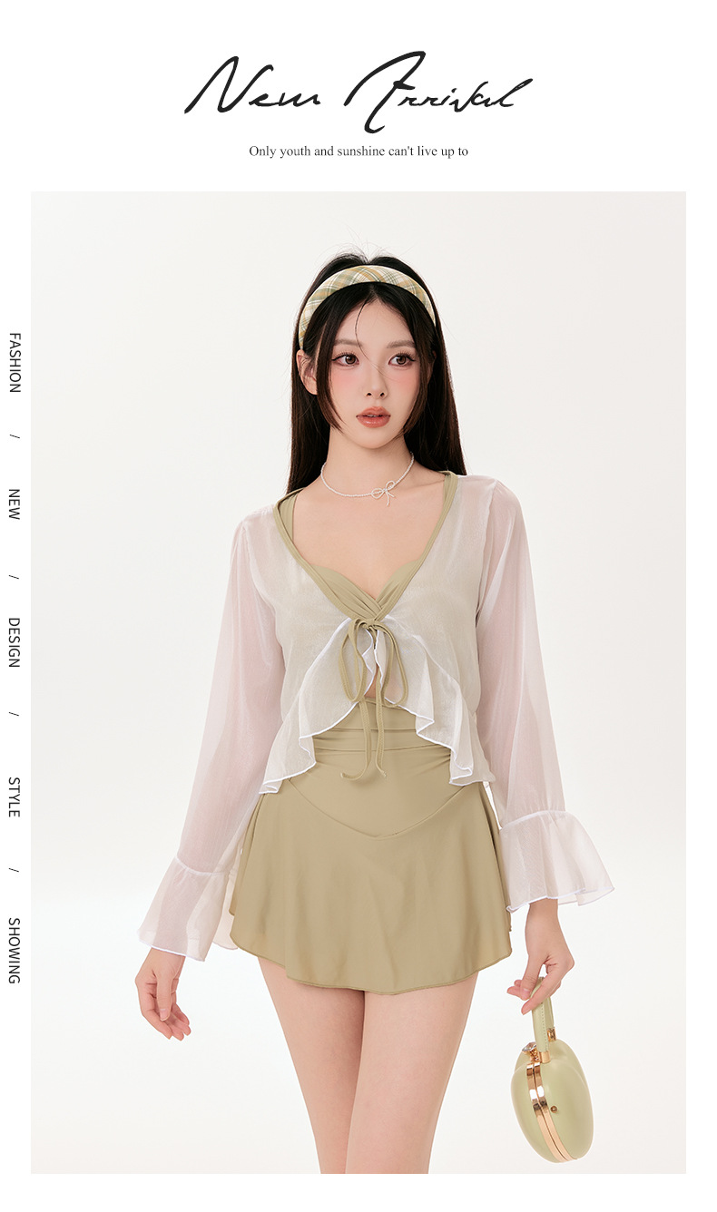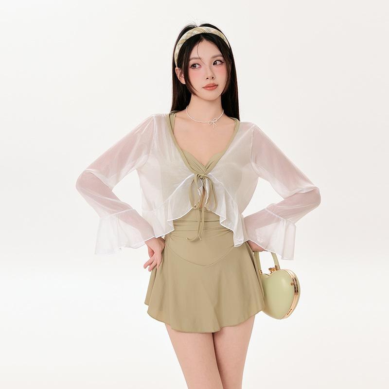 2025 새로운 폭발 수영복 여성용 육체 커버 슬림 긴소매 블라우스 바디 스커트 온천 선 스크린 수영복스토어 가기