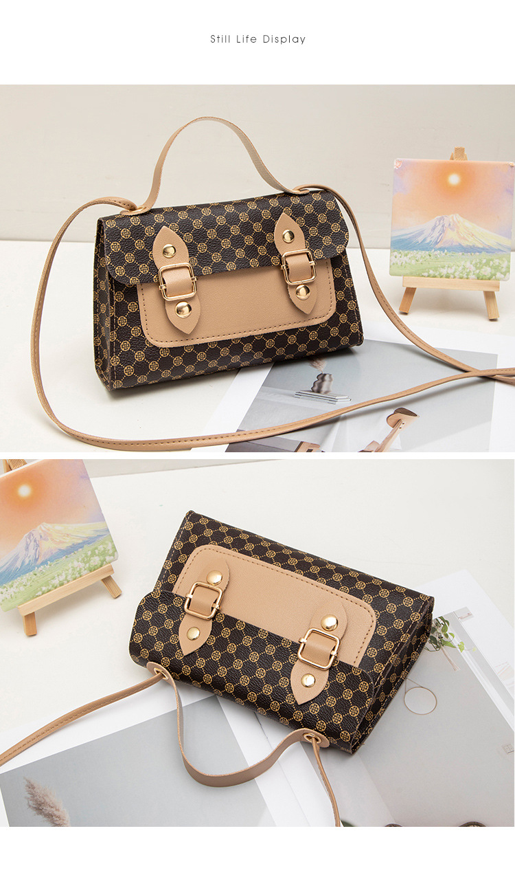패션 복고풍 인쇄 작은 사각형 가방 새로운 대비 색상 여성 가방 핸드백 여성 가방 어깨 가방 유행 휴대 전화 가방스토어 가기