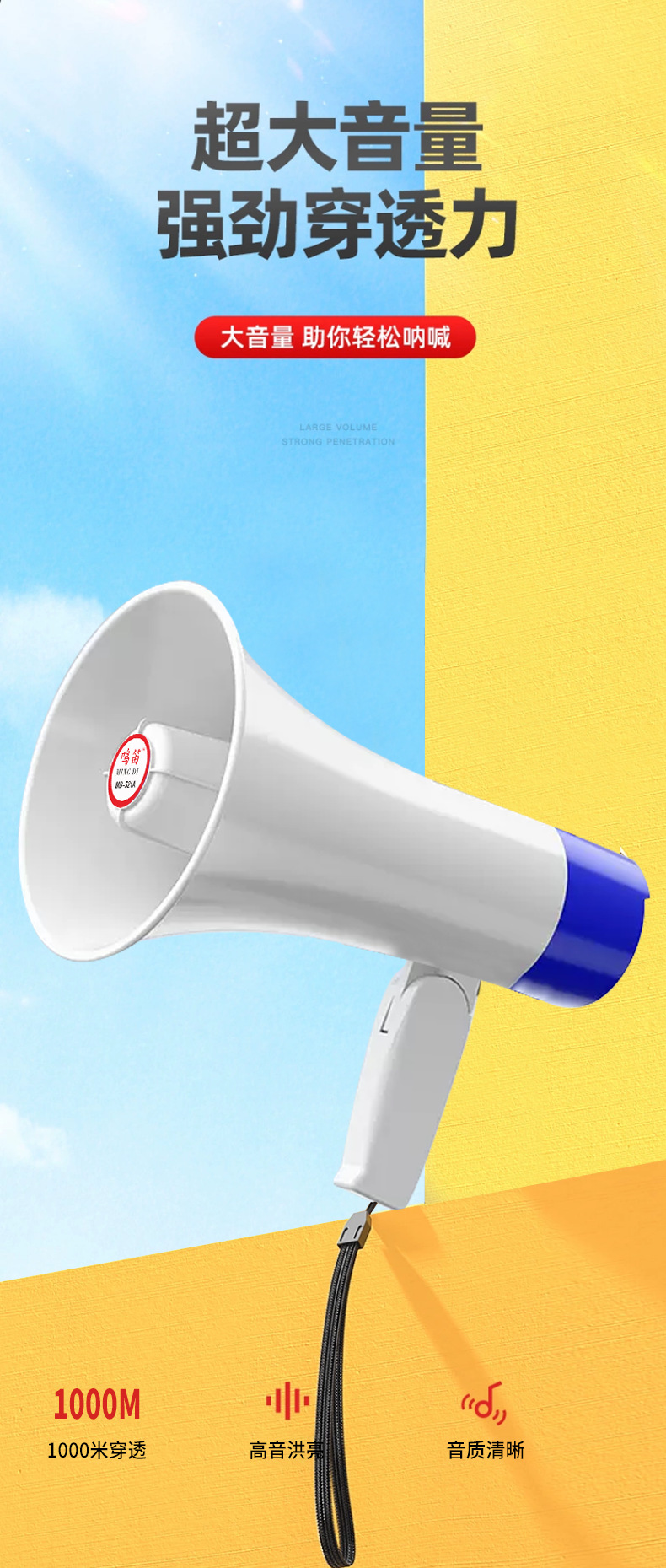 고성능 기록 가능한 스피커 야외 실속 프로모션 행상 메가폰 듀얼 리튬 배터리 스피커