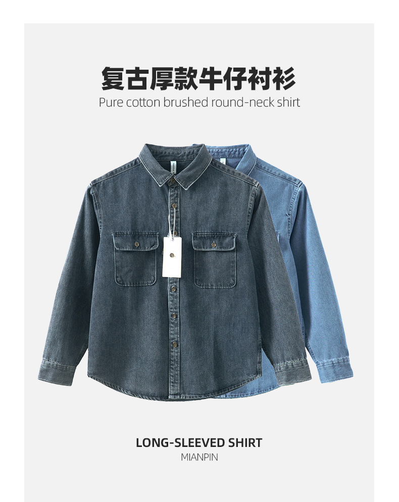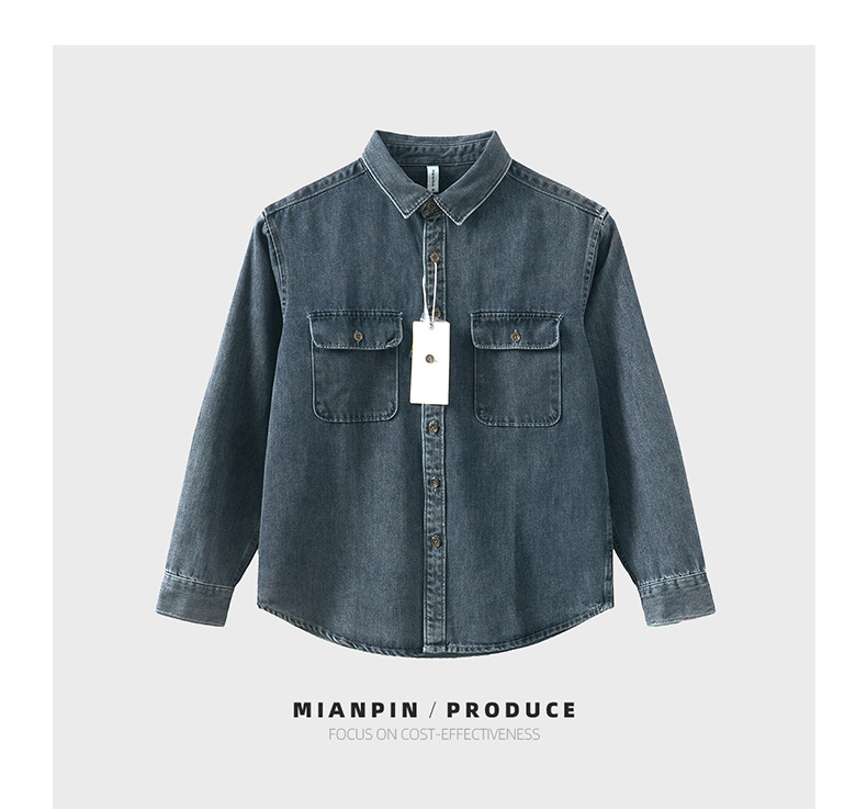 봄가을 남성 데님 긴팔 셔츠 워싱 더블 포켓 캐주얼 셔츠 아메리칸 스타일 상의 D297 캐주얼 워크웨어스토어 가기