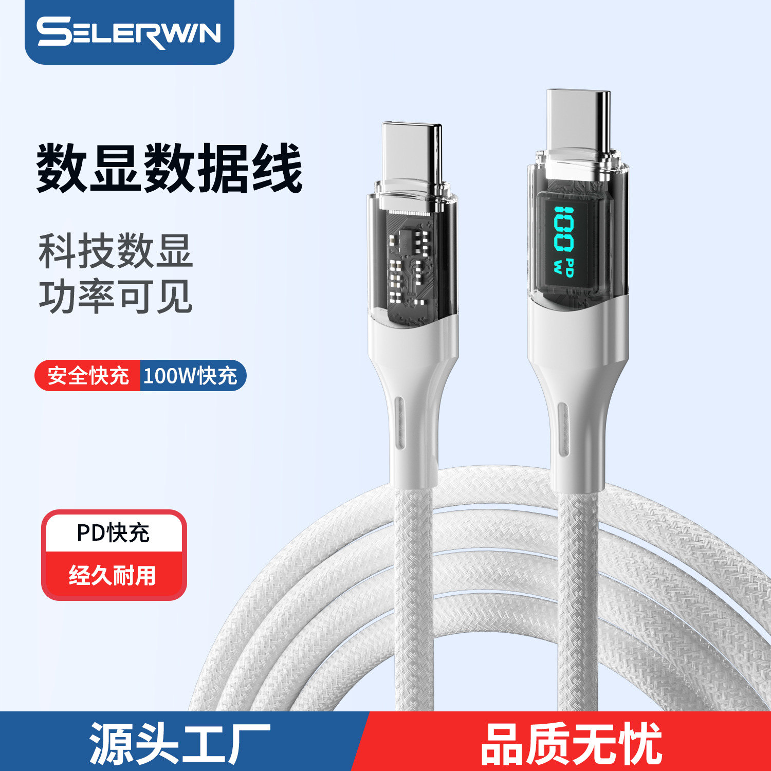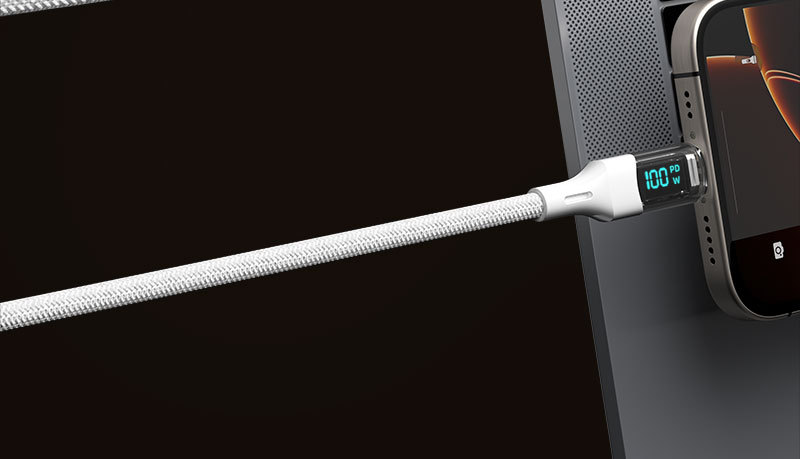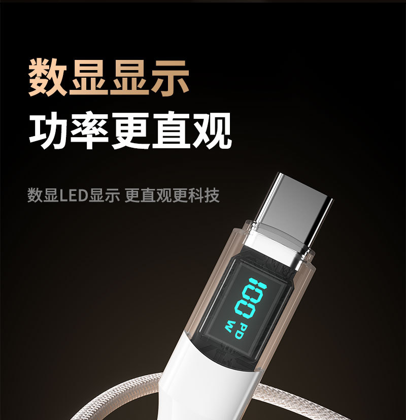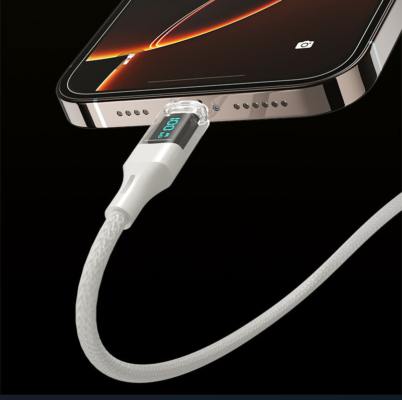 100W 투명 보조배터리 고속 충전 디지털 디스플레이 데이터 케이블, 화웨이 노트북용 타입-C 충전 케이블, 플래시 충전스토어 가기