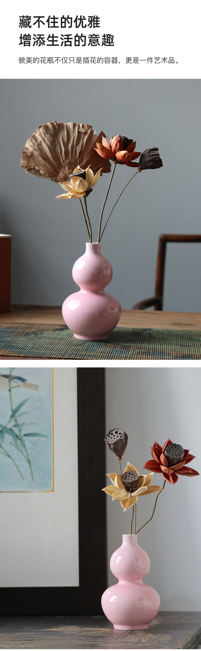 중국 스타일 가벼운 고급 조롱박 세라믹 장식품 거실 TV 내각 입구 연구 차 테이블 창조적 인 가벼운 럭셔리 홈 액세서리