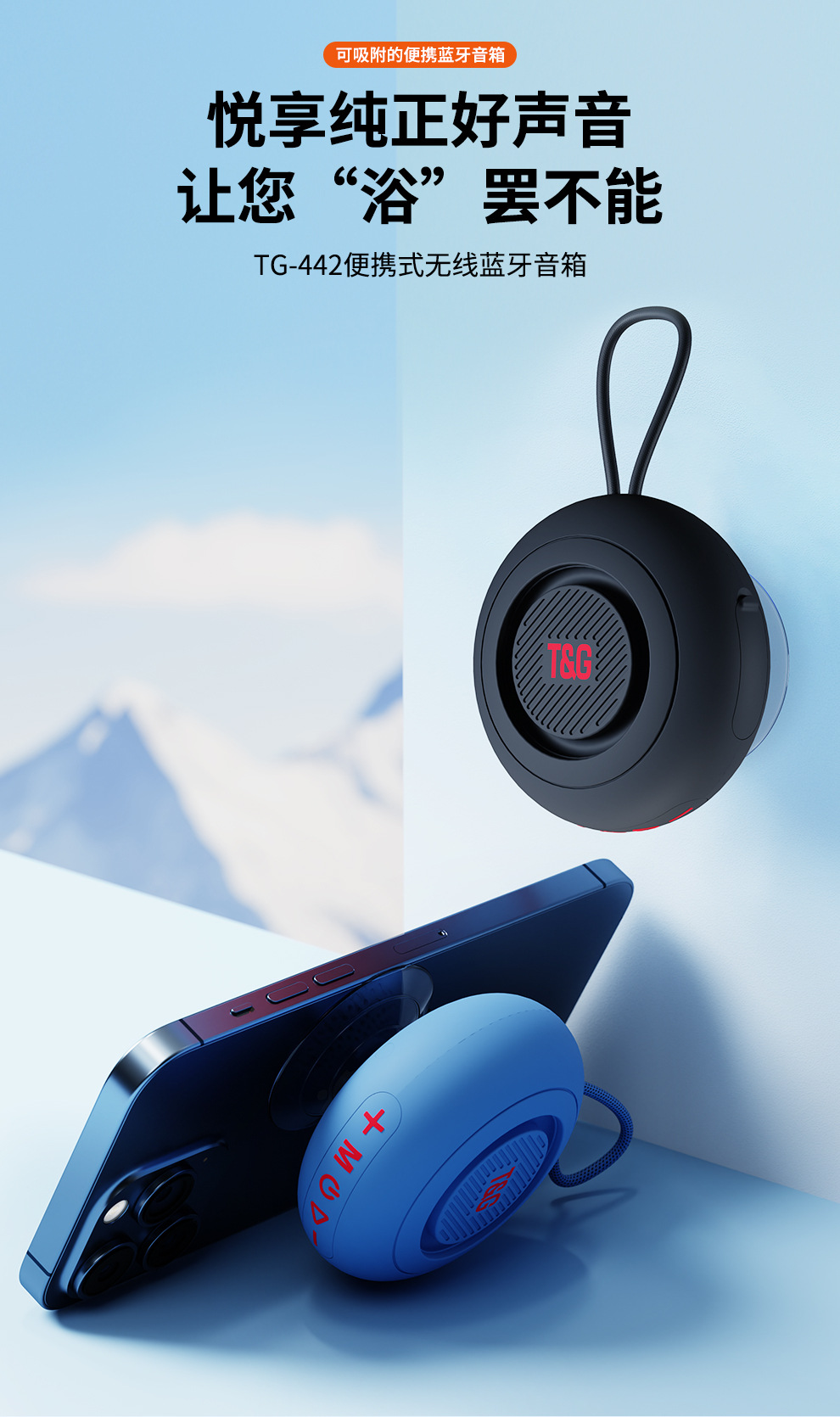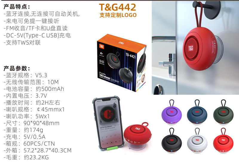 국경 간 TG442 대형 흡입 컵 블루투스 스피커 욕실 무선 무거운 서브 우퍼 야외 미니 블루투스 작은 스테레오