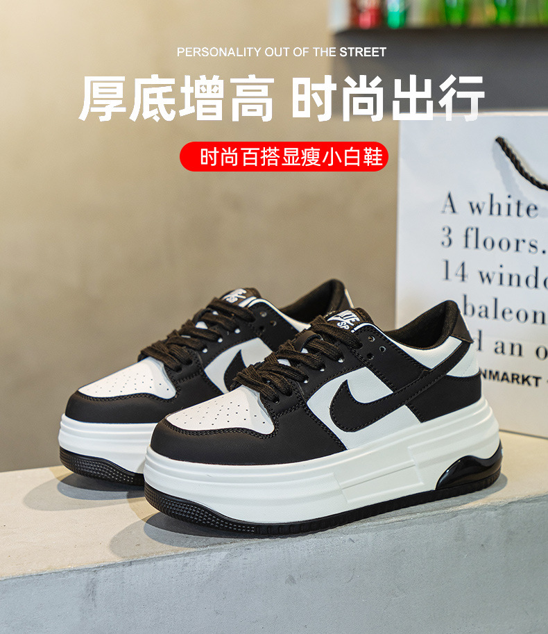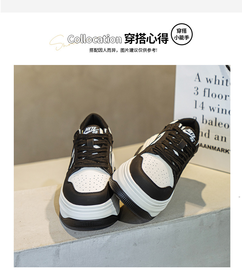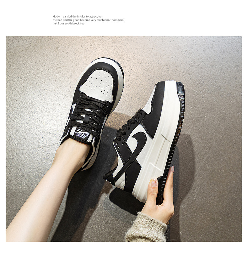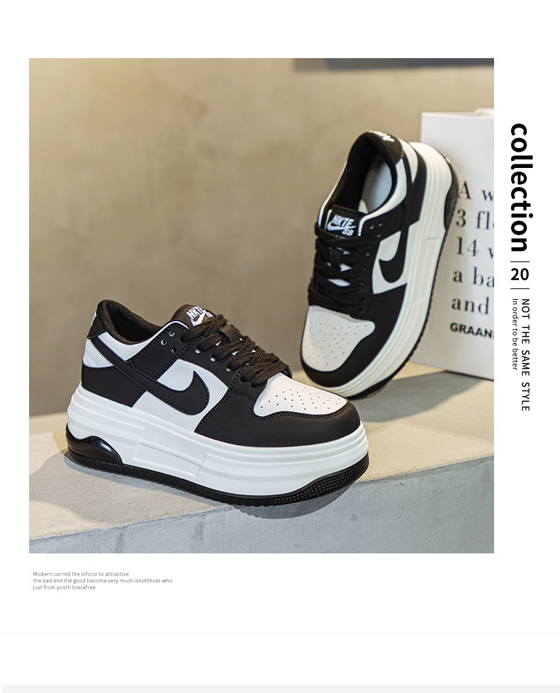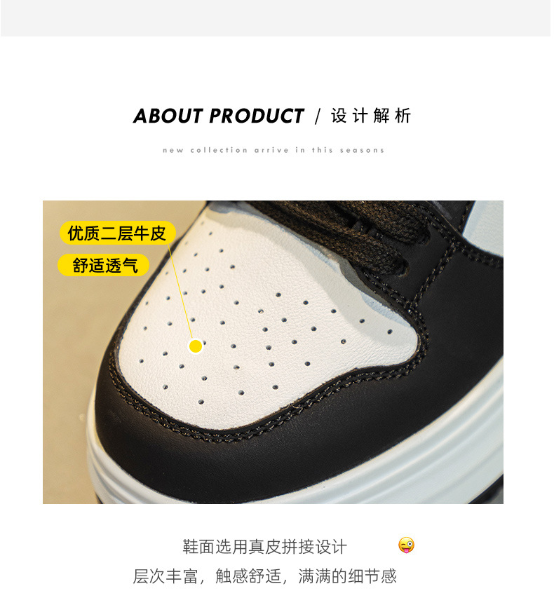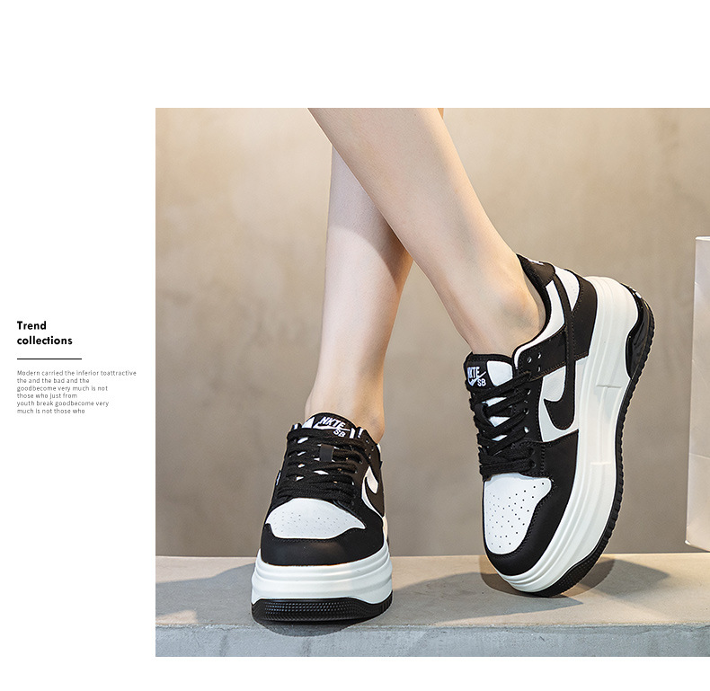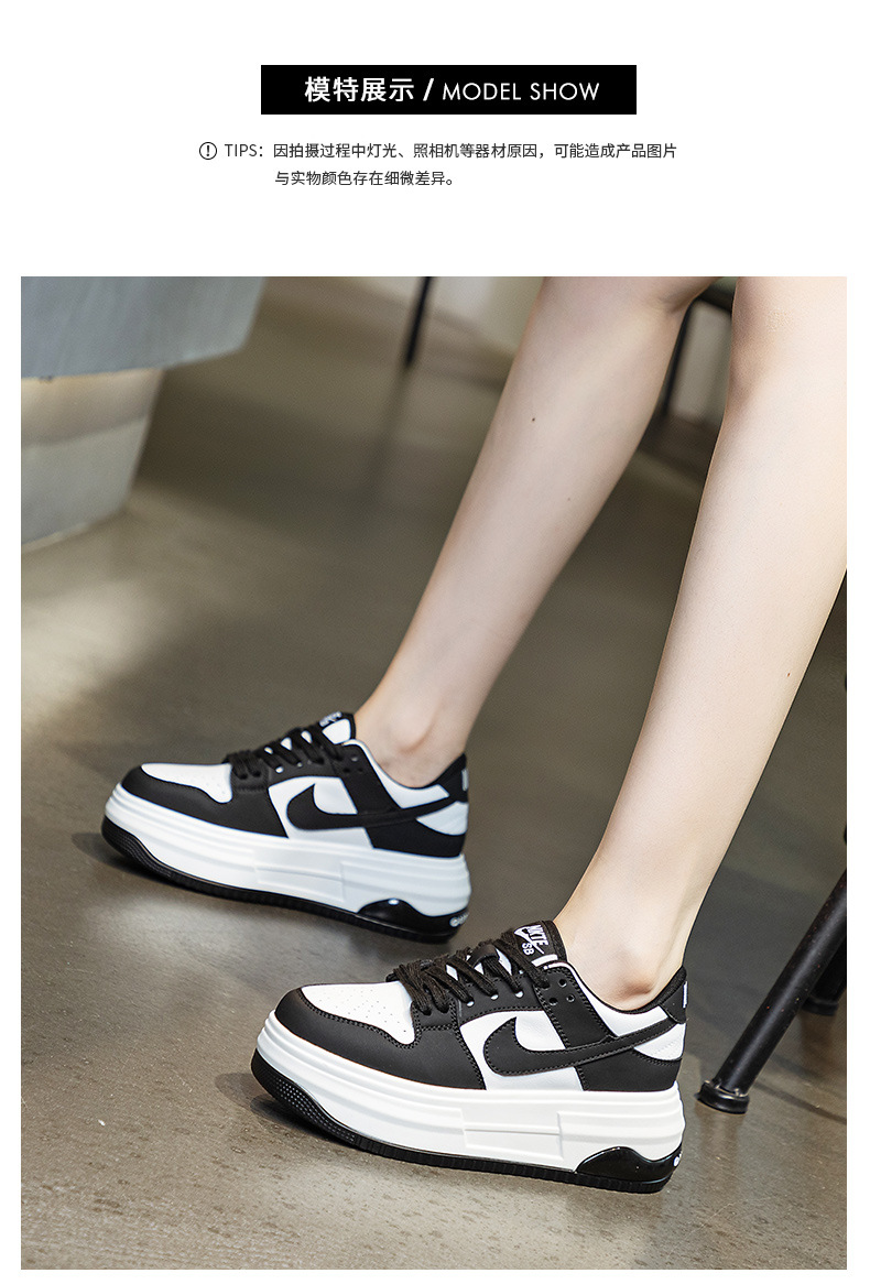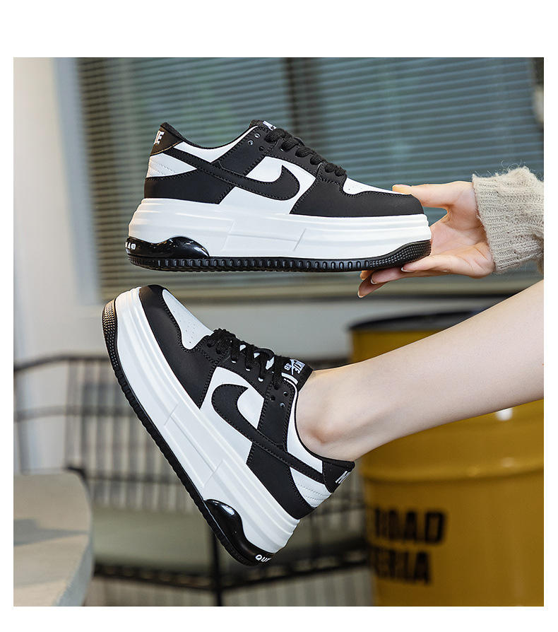 구구 여성화 2025 사계절 신상품 천연가죽 여성 한국 스타일 두꺼운 밑창 스니커즈 여성 트렌디 블랙 화이트 팬더 슈즈