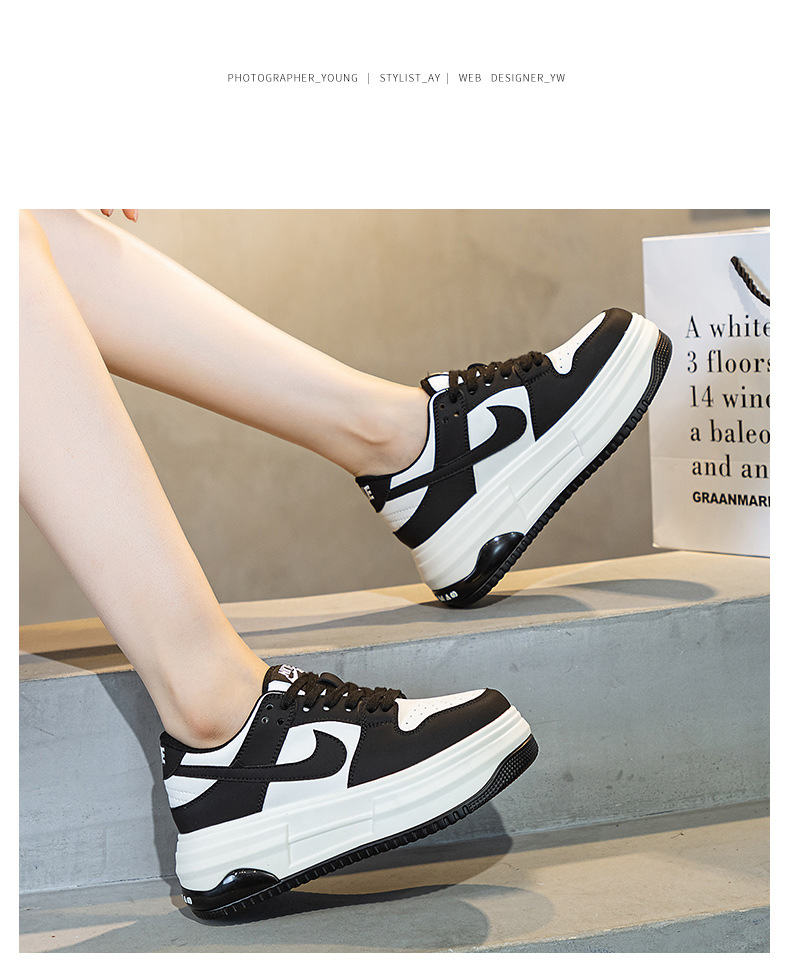 구구 여성화 2025 사계절 신상품 천연가죽 여성 한국 스타일 두꺼운 밑창 스니커즈 여성 트렌디 블랙 화이트 팬더 슈즈스토어 가기