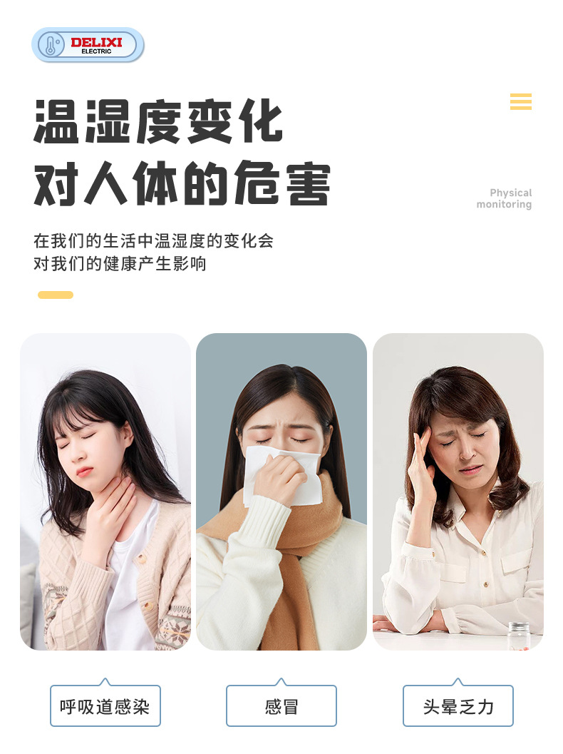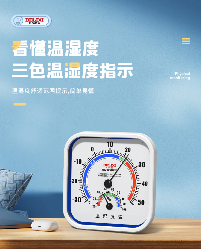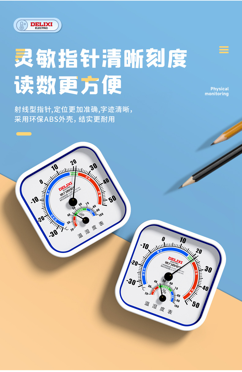 Delixi 온도계 및 습도계 약국 베이비 룸 온실 실내 특수 높은 정밀 건조 및 젖은 온도계 가정용스토어 가기