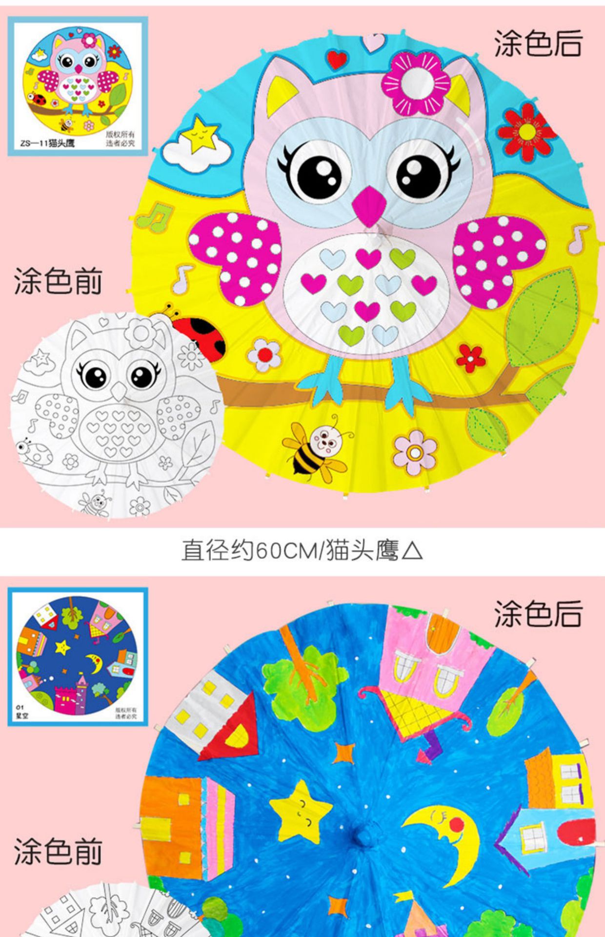 빈 기름 종이 우산 DIY 수제 그림 재료 유치원 창조적 인 어린이 손으로 그린 낙서 그림 골동품 종이 우산스토어 가기