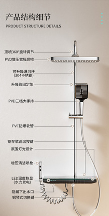 공장에서 제작된 샤워기 세트, 욕실용 스마트 디지털 디스플레이, 4단계 물 분사 샤워 스크린스토어 가기