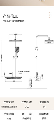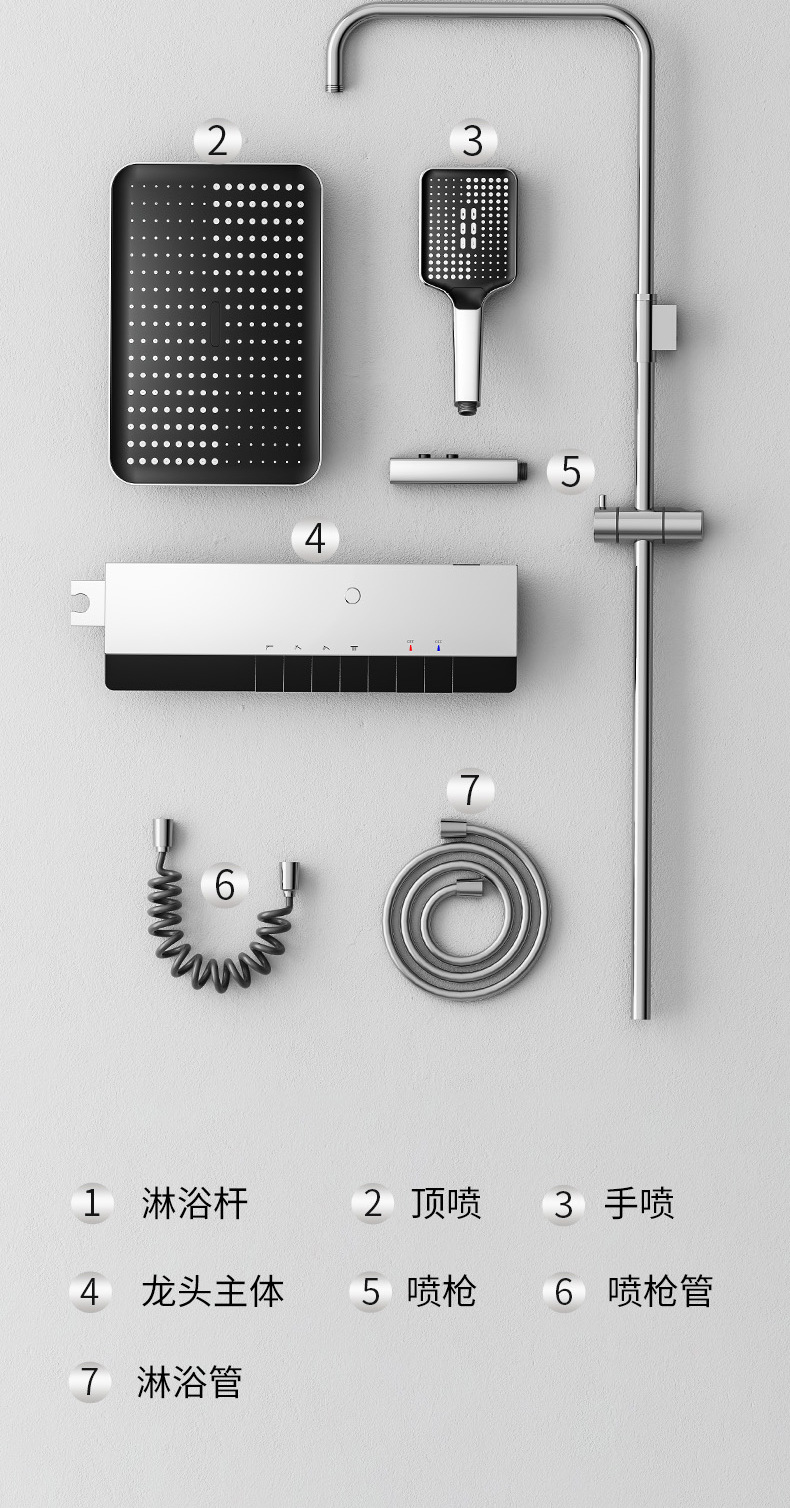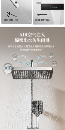공장에서 제작된 샤워기 세트, 욕실용 스마트 디지털 디스플레이, 4단계 물 분사 샤워 스크린