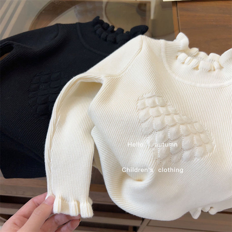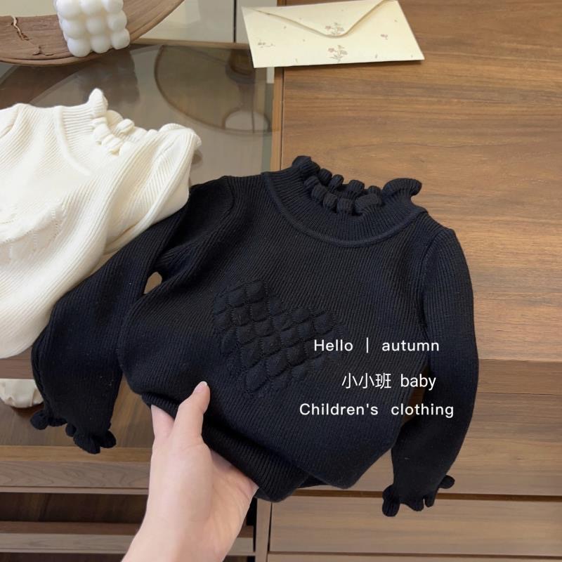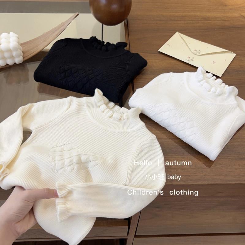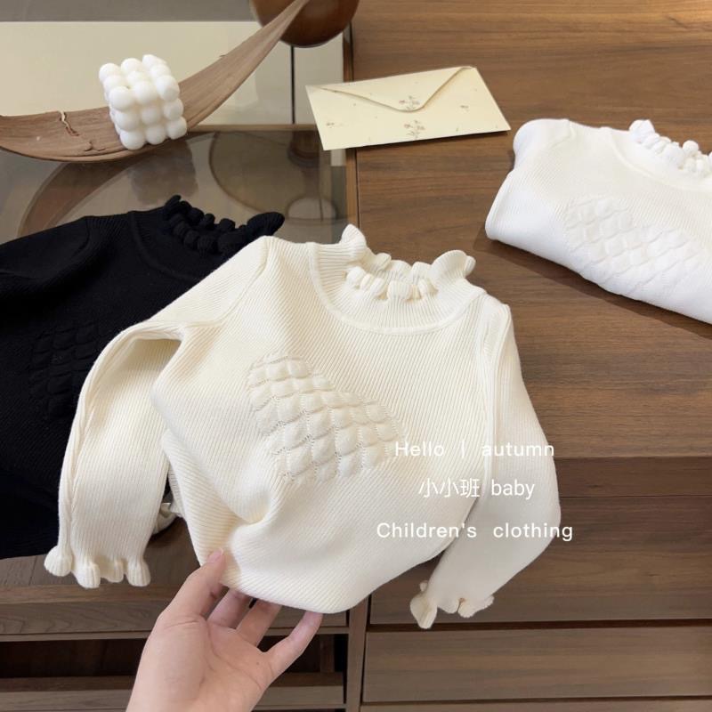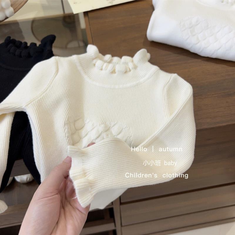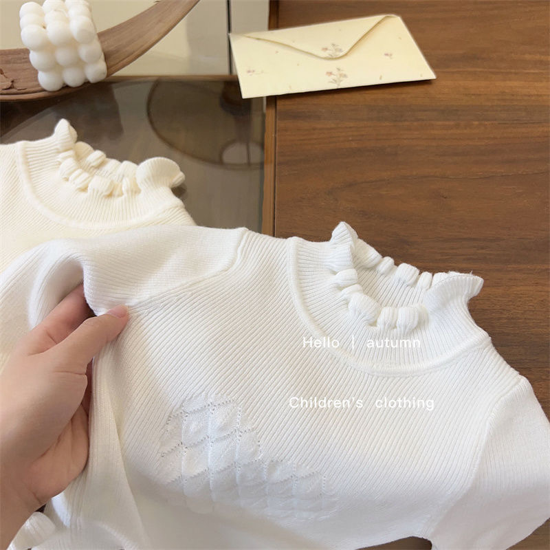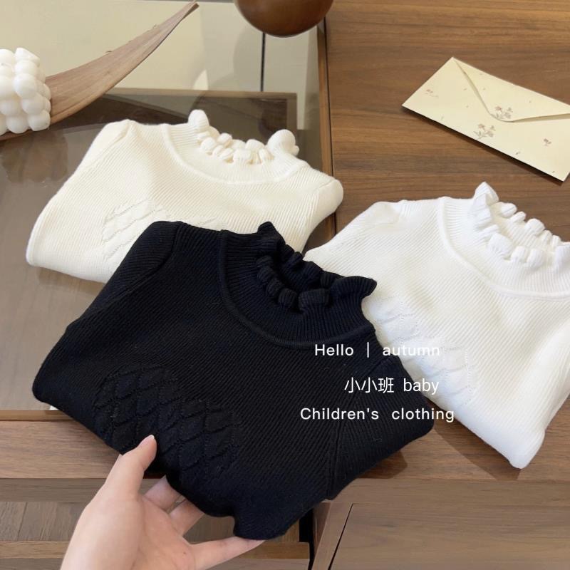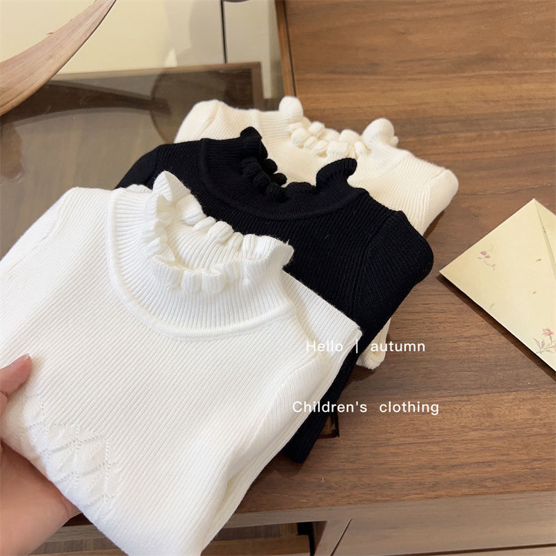 소녀 한국 스타일 봄과 가을 새로운 스웨터 아기 공주 스타일 레이스 하프 하이 칼라 베이스 셔츠 어린이 서양식 니트 셔츠