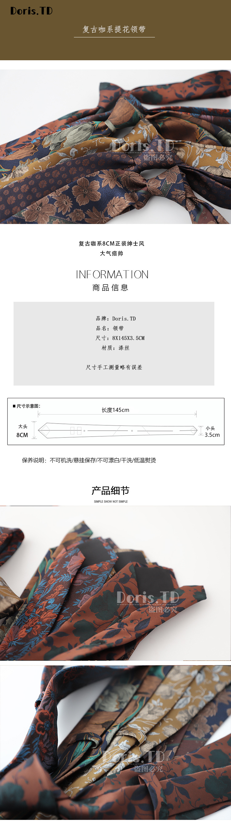 공장 재고 도매 커피 시리즈 컬러 자카드 빈티지 홍콩 스타일 원피스 남성 넥타이 예술적 스타일 넥타이 남성스토어 가기