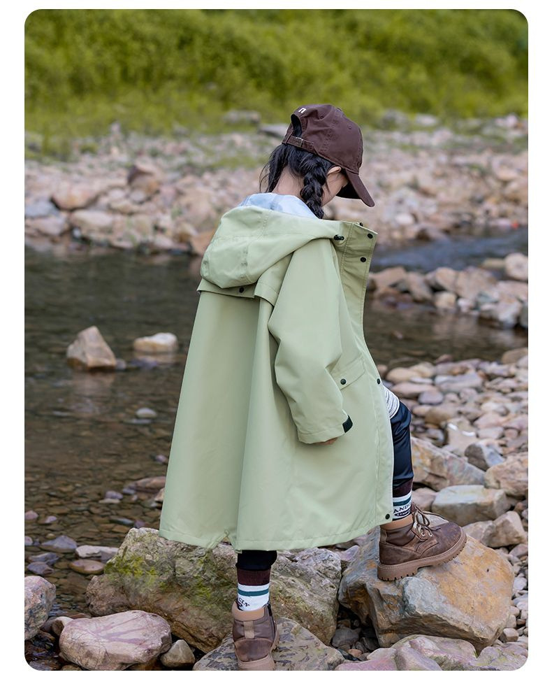 소녀 봄 윈드브레이커 코트 중간 길이의 겉옷 2024 새로운 어린이 봄과 가을 겉옷 탑 캐주얼 트렌디스토어 가기