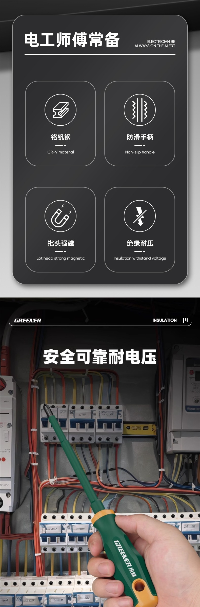Greenforest 전기 특수 스크루 드라이버 크로스 스크루 드라이버 전압 스크루 드라이버 가정용 강한 자기 Torx 절연 스크루 드라이버스토어 가기