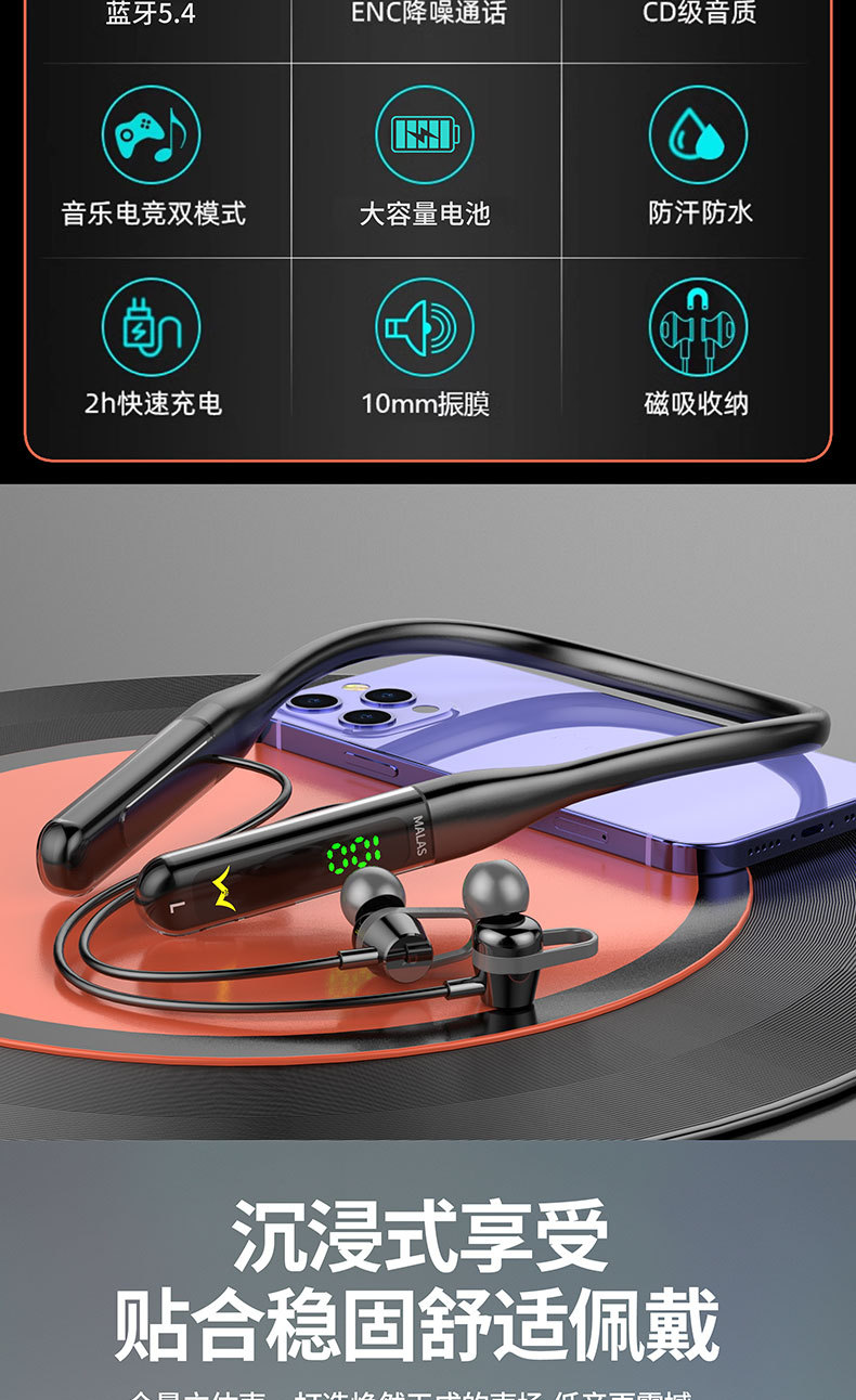 Beican 새로운 스포츠 블루투스 헤드셋 목에 걸려 긴 내구성 및 대형 방수 전자 스포츠 소음 감소 실행 유니버설스토어 가기