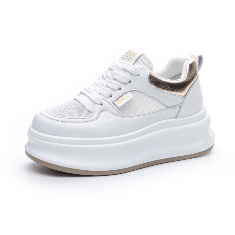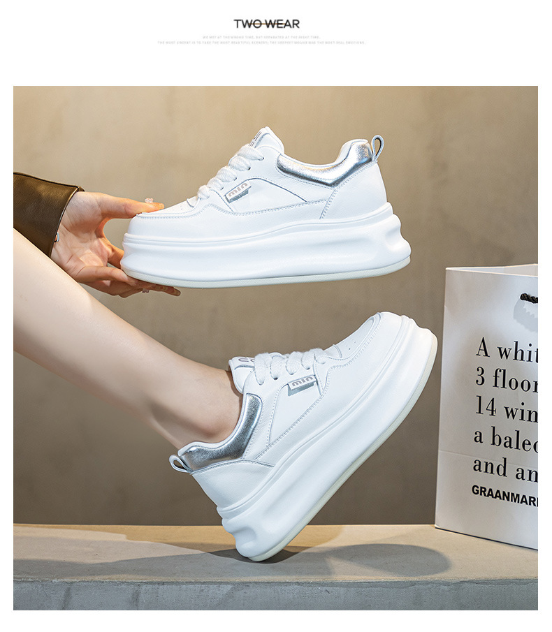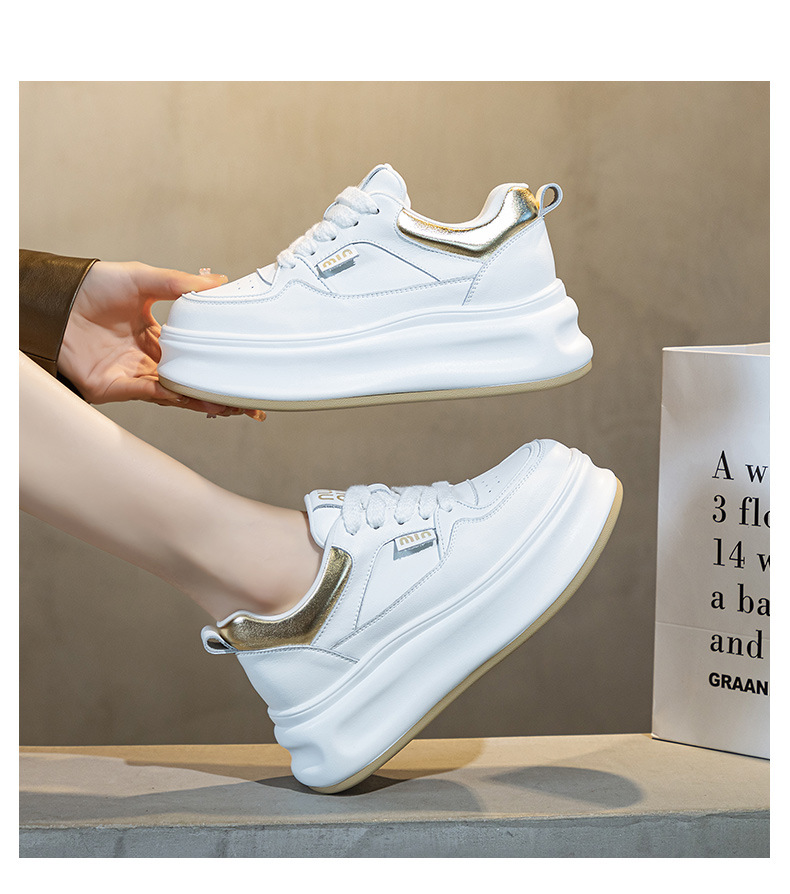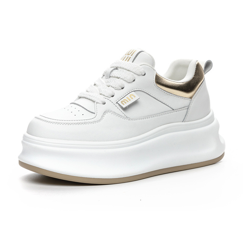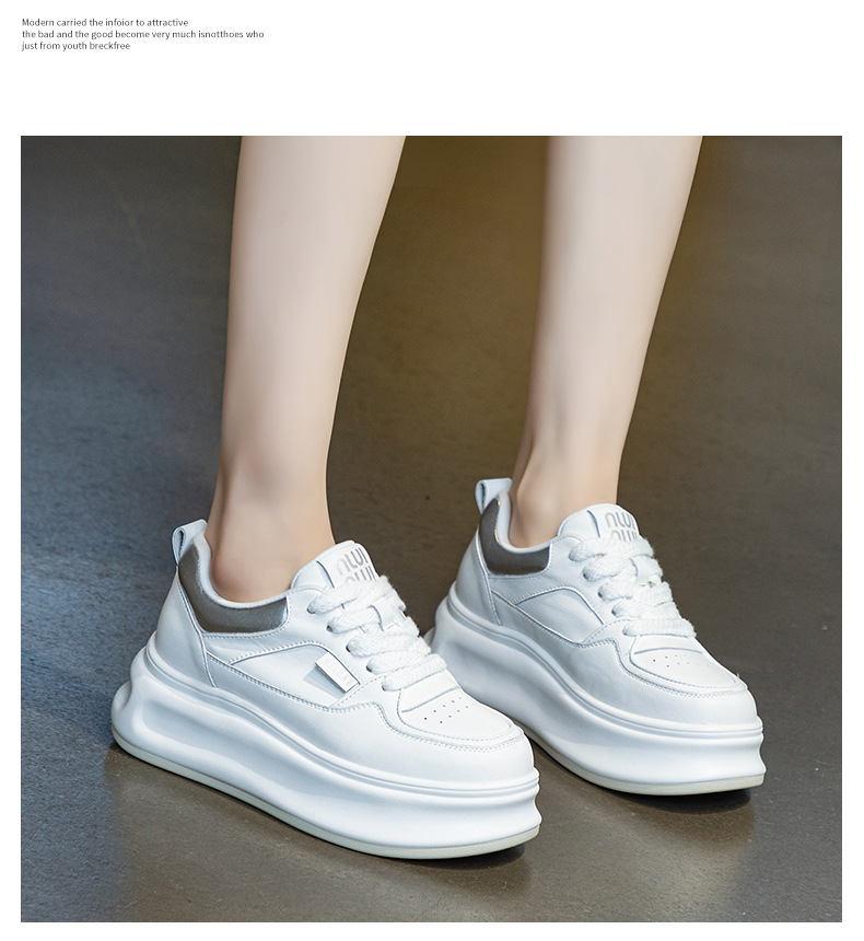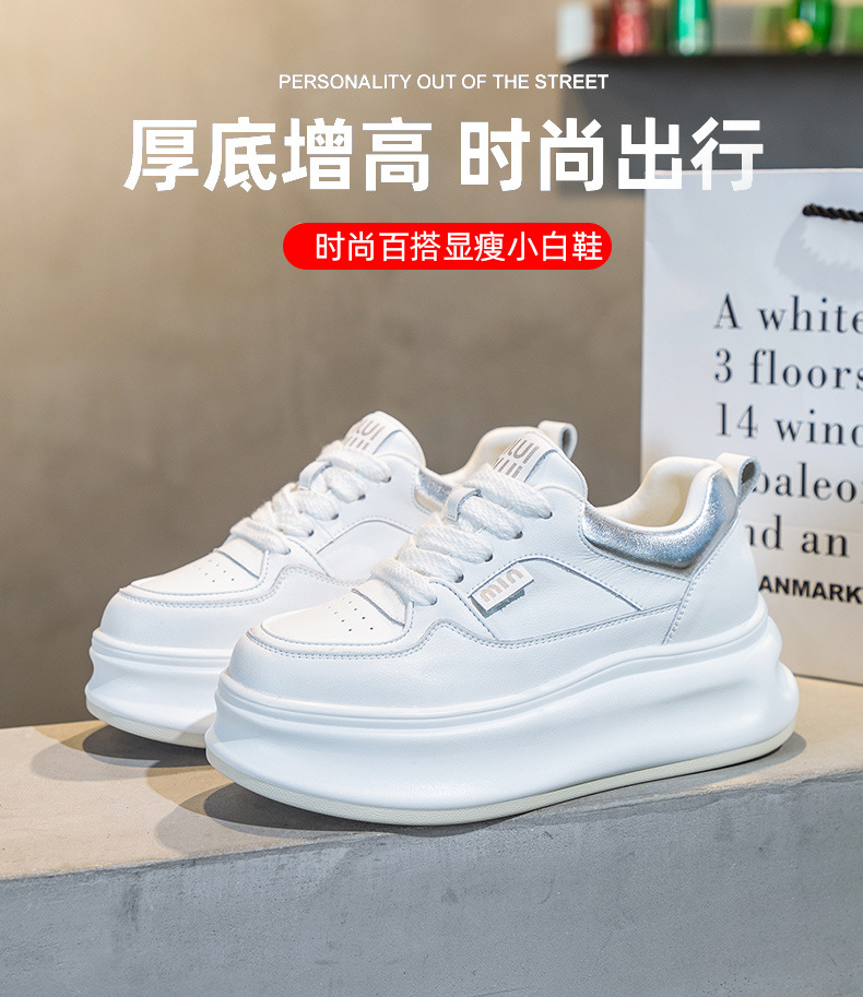 흰색 신발 여성 신발 2025 봄 새로운 인기 정품 가죽 다목적 두꺼운 밑창 내부 고조 캐주얼 신발 여성 통기성 운동화