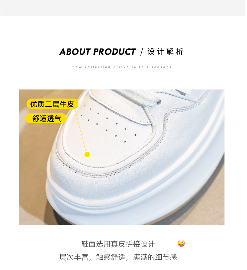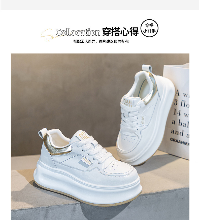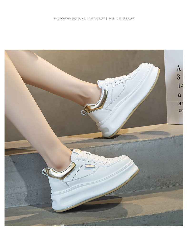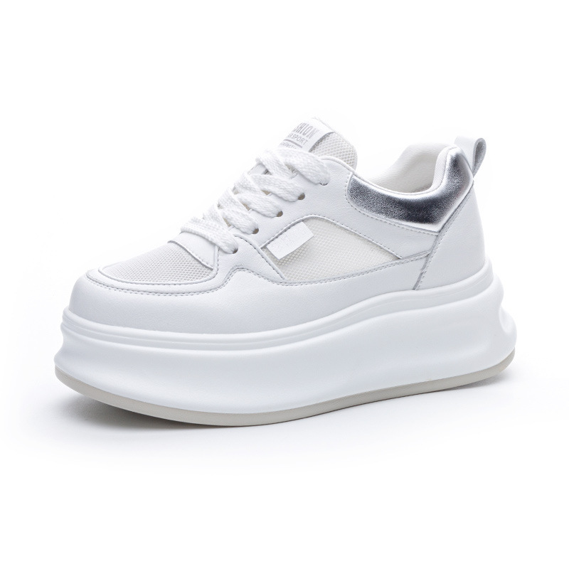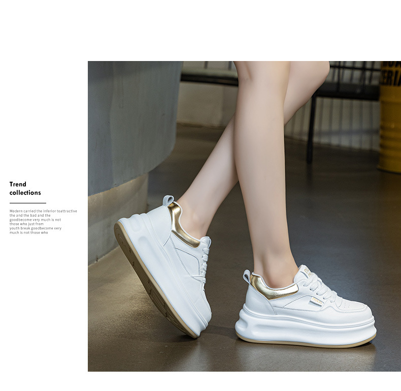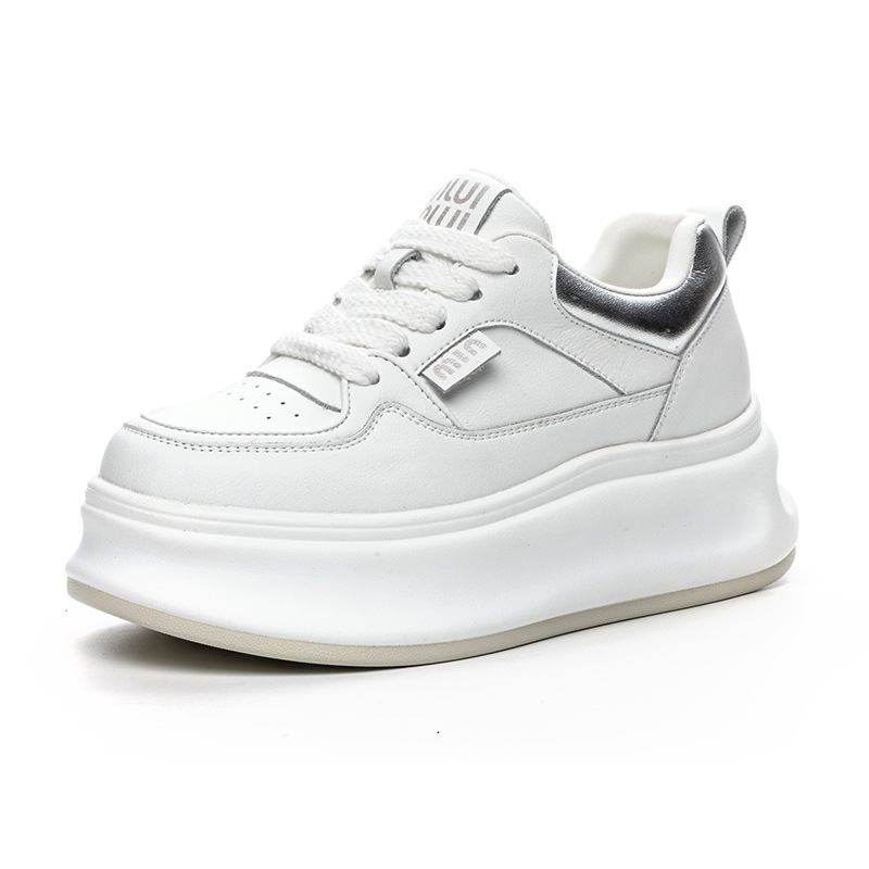 흰색 신발 여성 신발 2025 봄 새로운 인기 정품 가죽 다목적 두꺼운 밑창 내부 고조 캐주얼 신발 여성 통기성 운동화