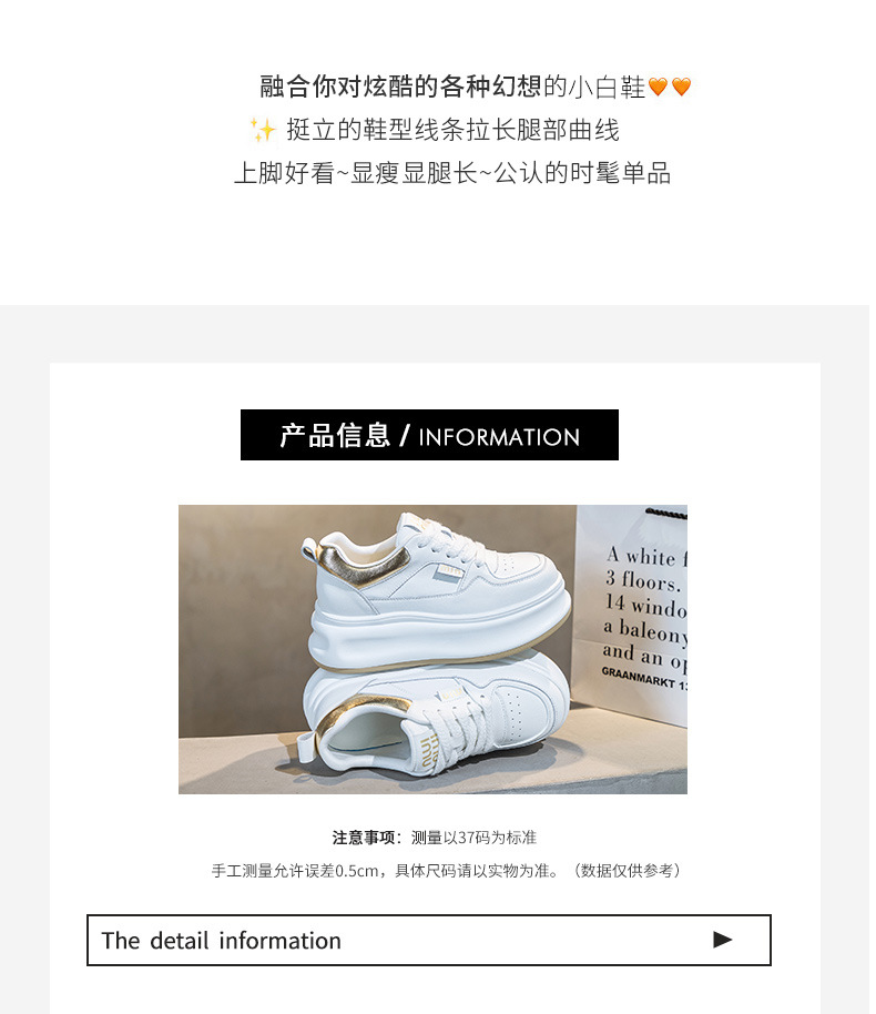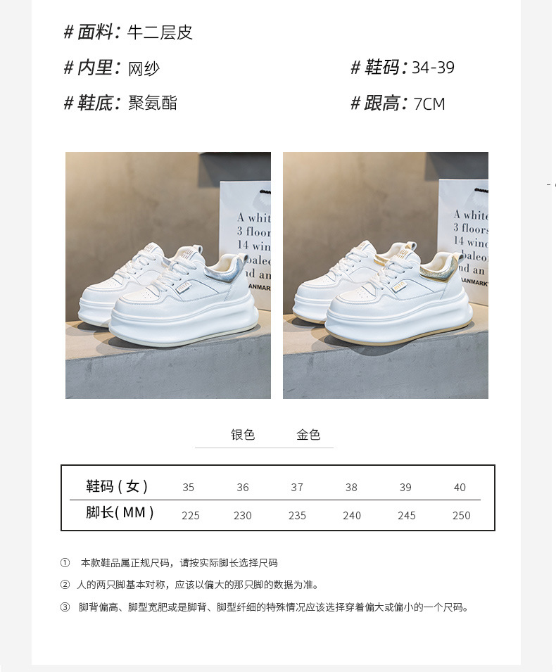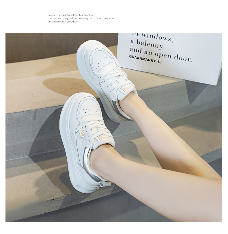 흰색 신발 여성 신발 2025 봄 새로운 인기 정품 가죽 다목적 두꺼운 밑창 내부 고조 캐주얼 신발 여성 통기성 운동화스토어 가기