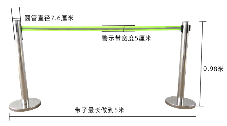 산송 전기 스테인레스 스틸 5 m 경고 벨트 망원경 울타리 격리 벨트 가드레일 이중 경고