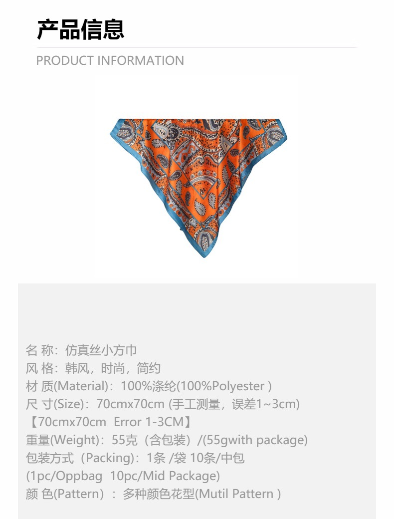 새로운 70CM 패션 조커 실크 작은 광장 사계절 다기능 유니폼 장식 스카프 넥타이 헤어 밴드 라이브스토어 가기