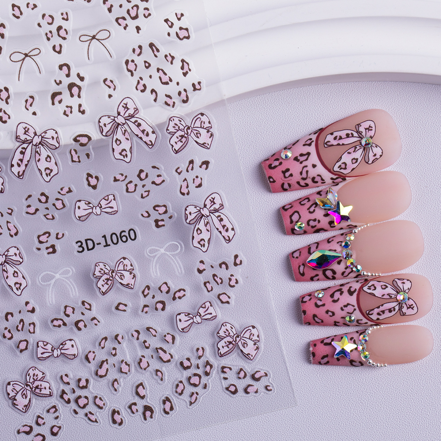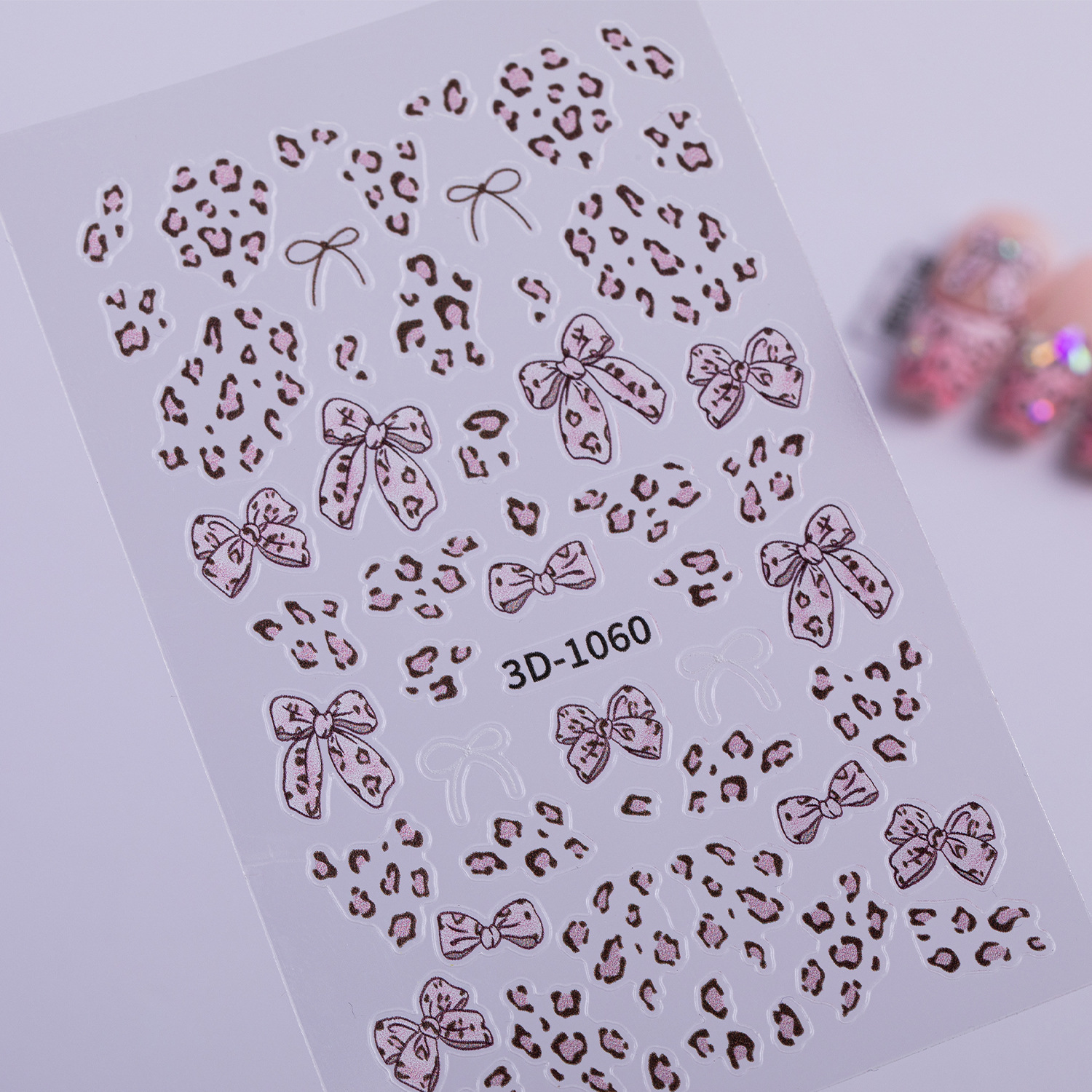 표범 무늬 리본 네일 스티커 평면 유럽 및 미국 스타일 표범 무늬 리본 네일 스티커 장식품 3D 스타일