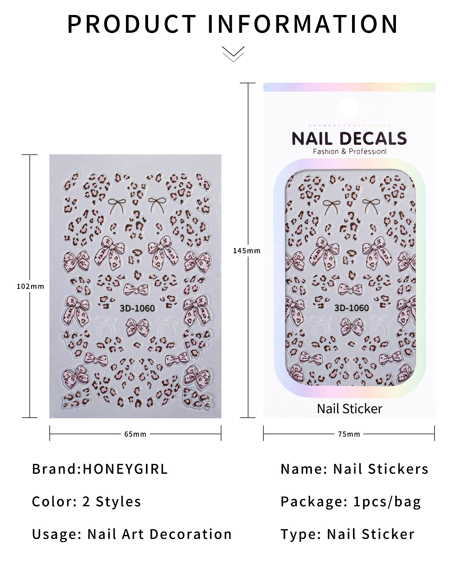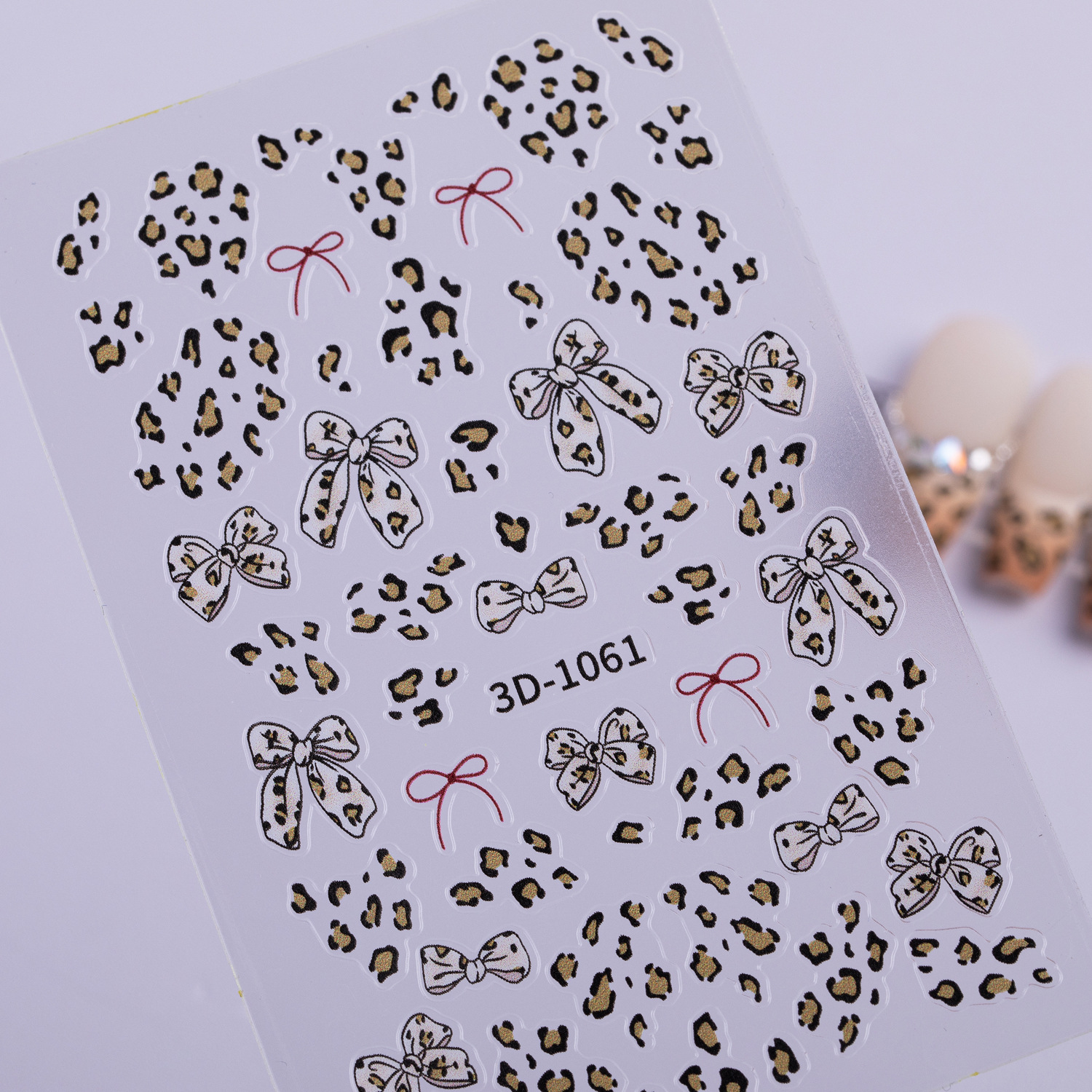 표범 무늬 리본 네일 스티커 평면 유럽 및 미국 스타일 표범 무늬 리본 네일 스티커 장식품 3D 스타일스토어 가기