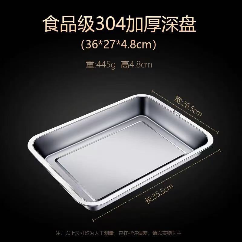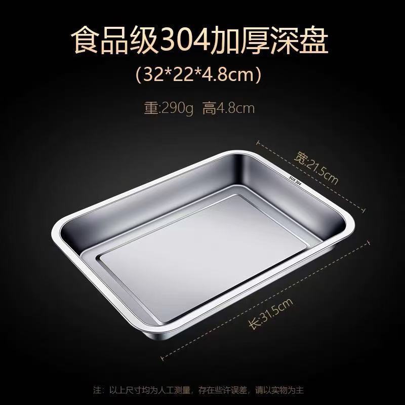 스테인레스 스틸 스퀘어 플레이트 트레이 직사각형 상업용 가정용 쌀 스팀 플레이트 접시 두꺼운 만두 플레이트 철 바베큐 플레이트