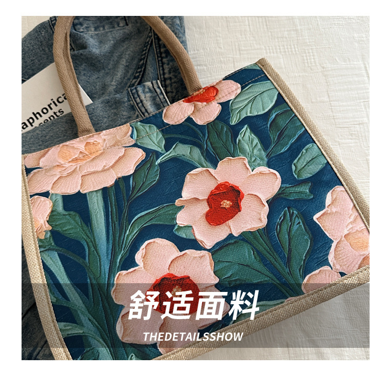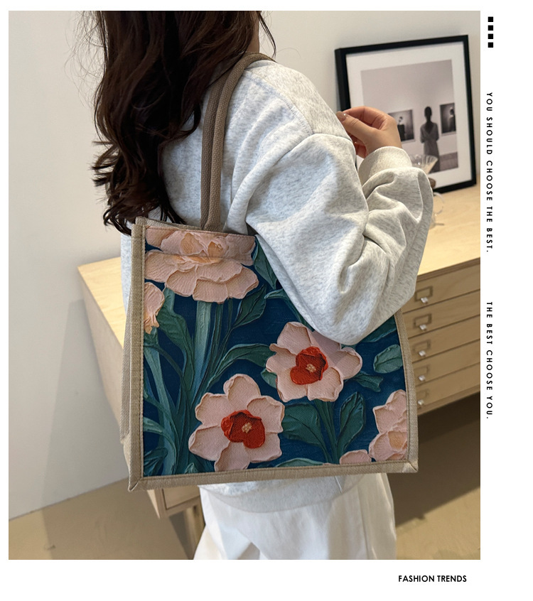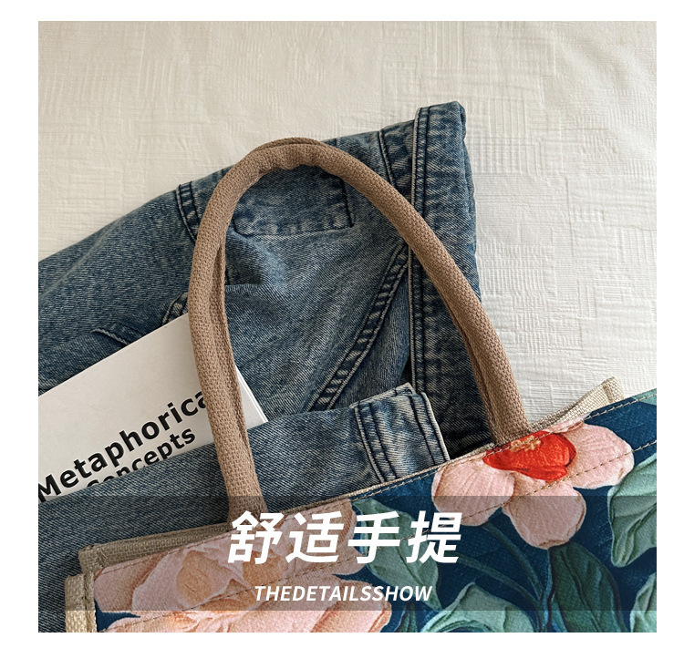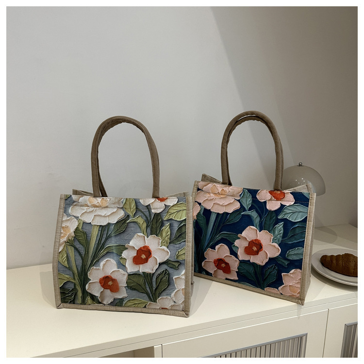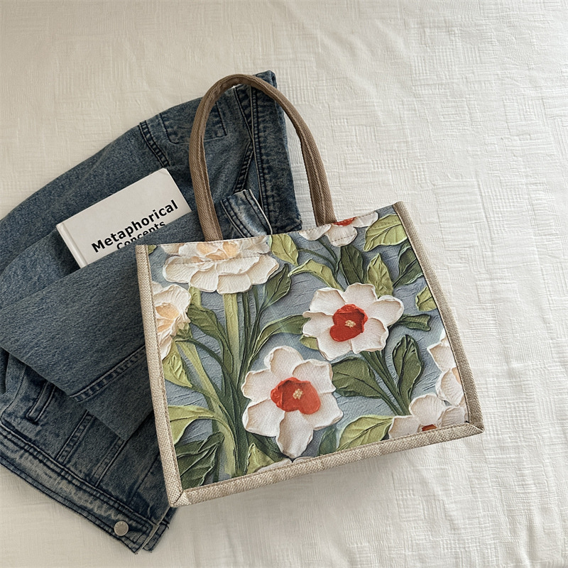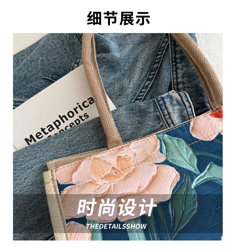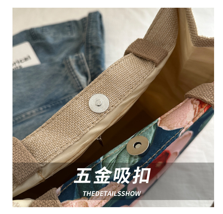 대용량 리넨 통근 가방 2024 새로운 어깨 토트 백 민족 스타일 학생 핸드백 클래스스토어 가기