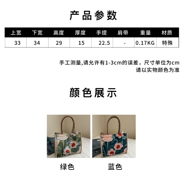 大容量亚麻通勤包包2024新款单肩托特包民族风学生手提上课手提袋