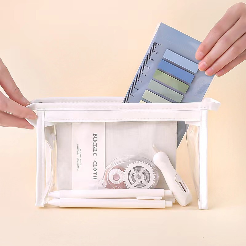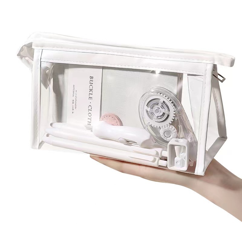 투명 연필 가방 높은 색상 가치 대용량 문구 가방 간단한 단색 일본 화장품 가방-제로 구매스토어 가기