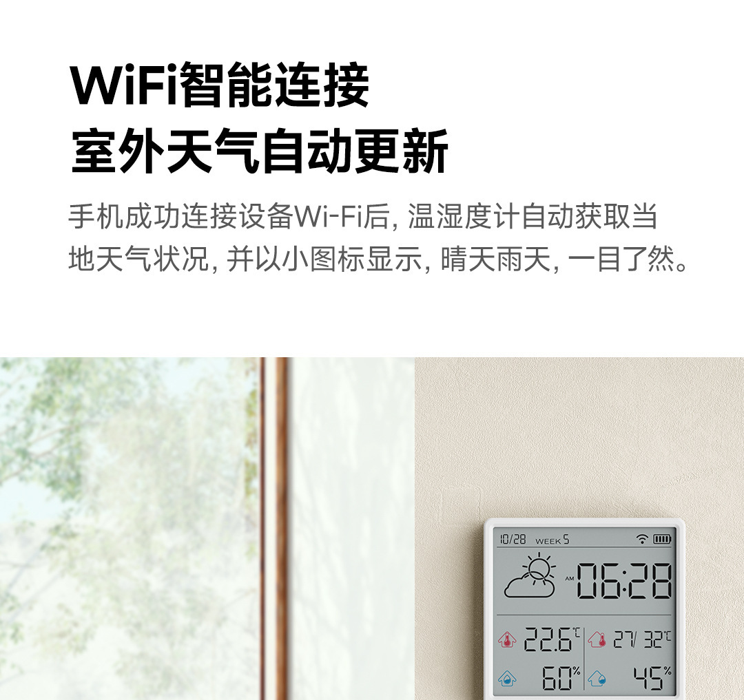 Duke 온도 및 습도 측정기 TH3 wifi 스마트 홈 고정밀 디지털 디스플레이 전자 스티커 및 스탠드 온도 및 습도 측정기