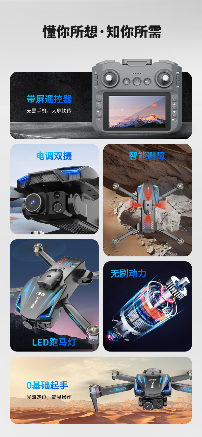 새로운 S18 브러시리스 드론, 화면 포함, 항공 사진, 광학 흐름 장애물 회피 항공기, ESC 원격 제어 항공기, 대외 무역 드론스토어 가기