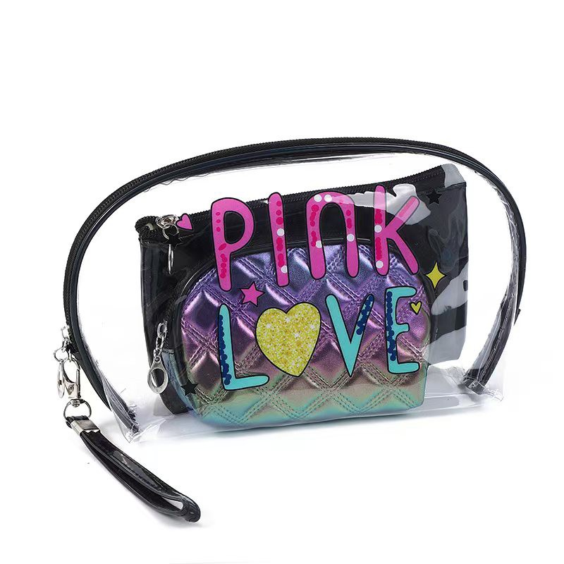 새로운 대용량 여행 휴대용 투명한 3 조각 화장품 가방 저장 가방 소녀 귀여운 세탁 가방 도매