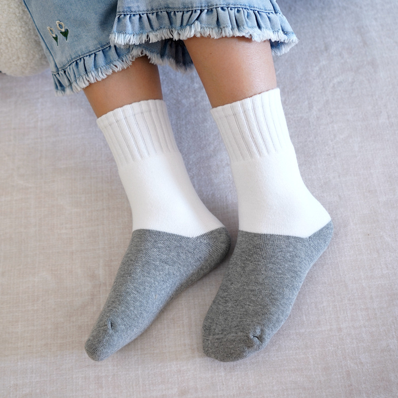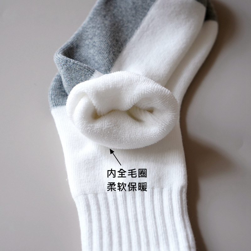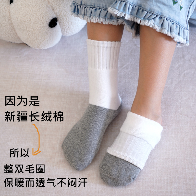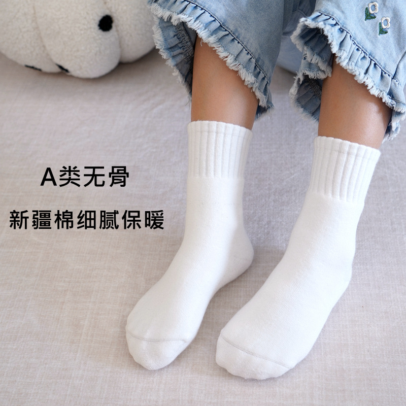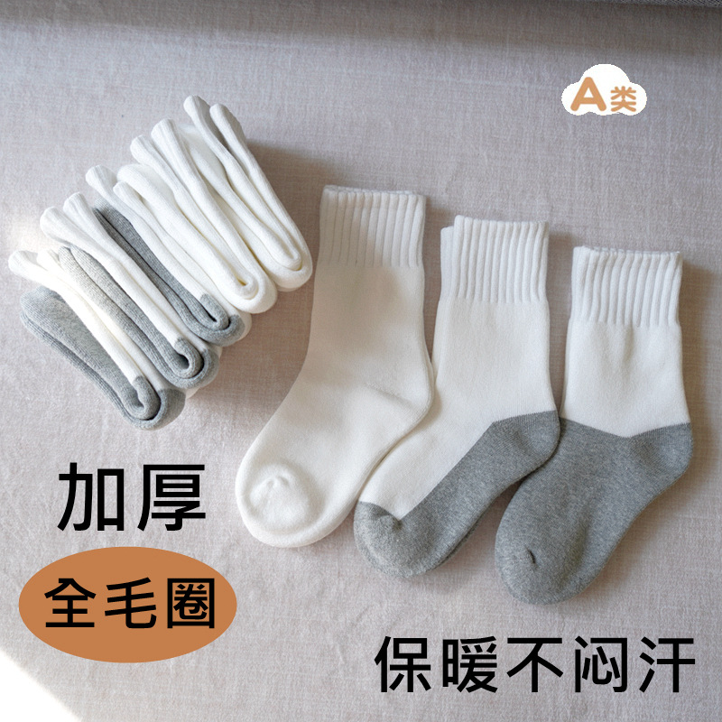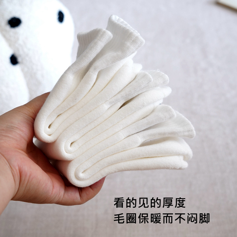 도매 가을과 겨울 기모 두꺼운 어린이 양말 따뜻한 테리 양말 뼈없는 중간 튜브 양말 얼룩 방지 흰색 학생 양말스토어 가기